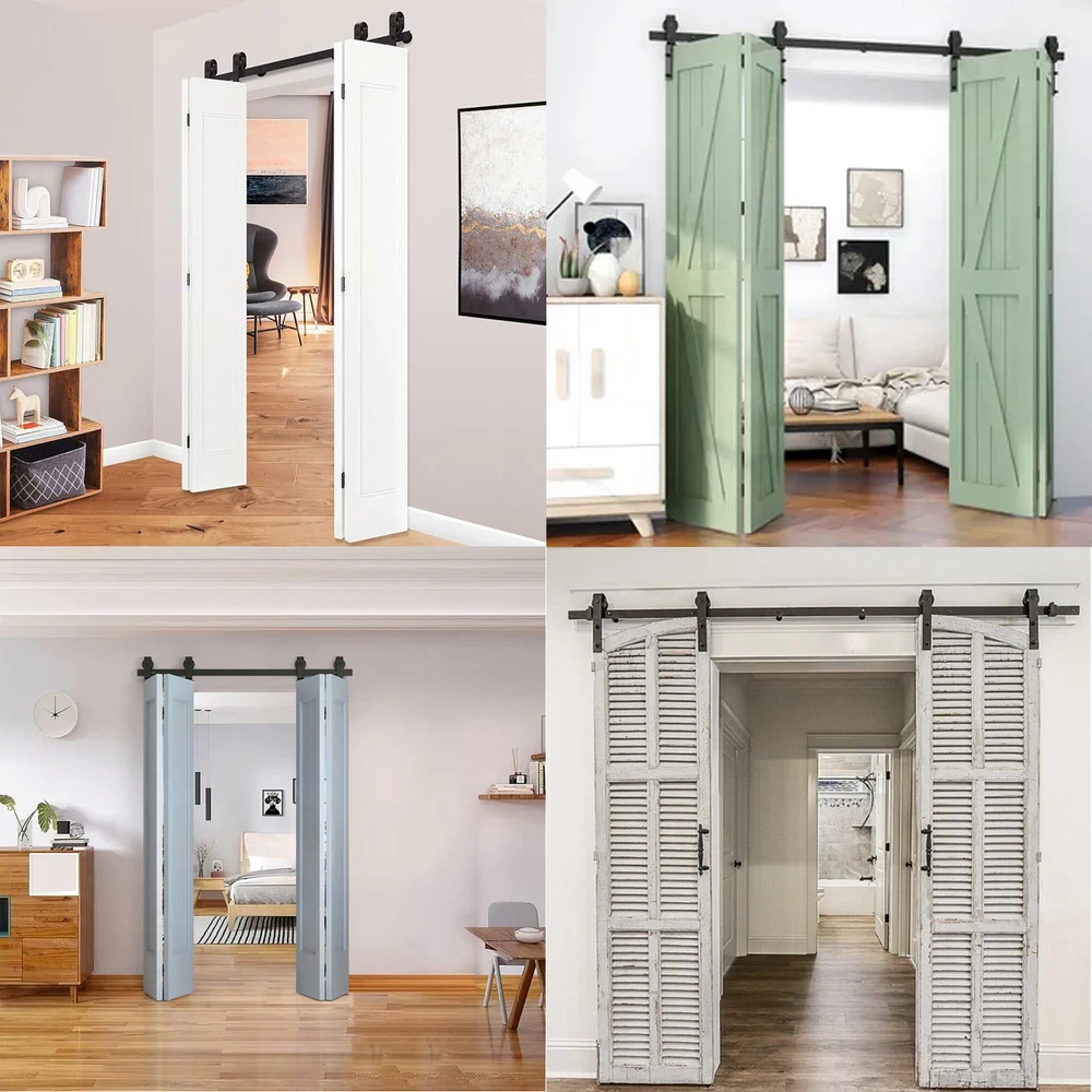 60in Sliding Barn Door Hardware Kit Modern Closet Hang Foldable Style Track Rail
