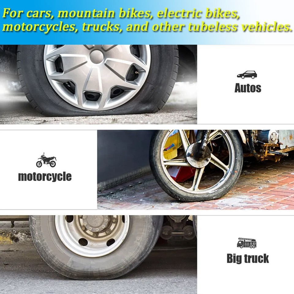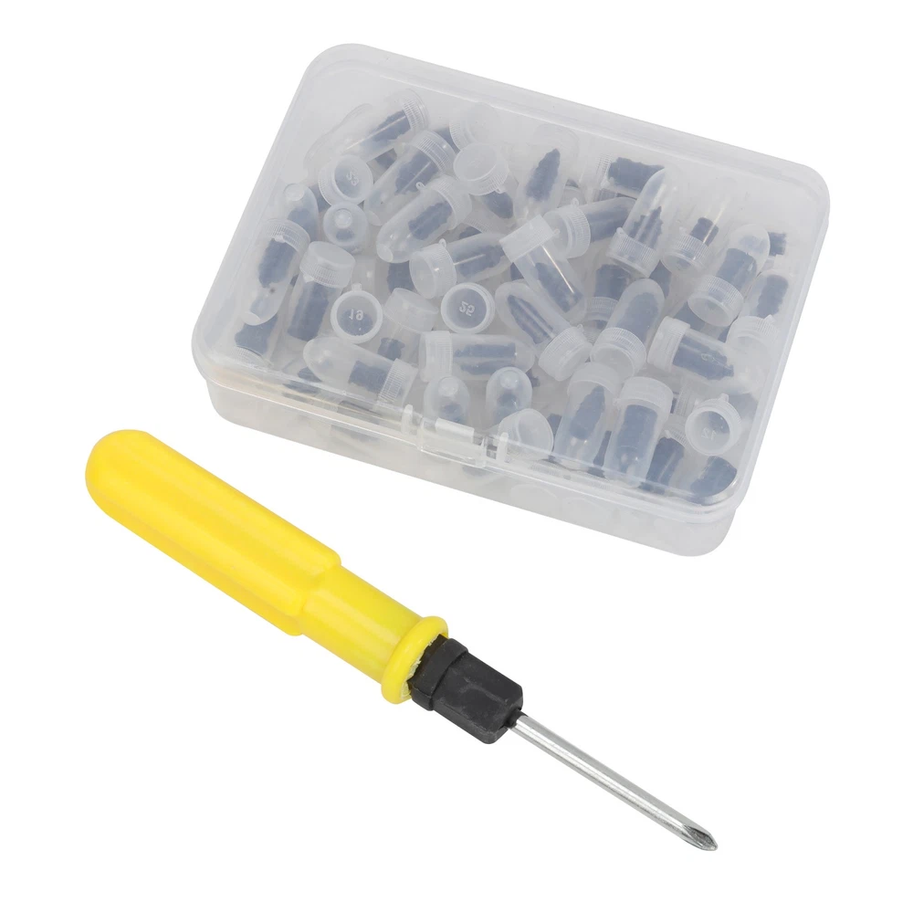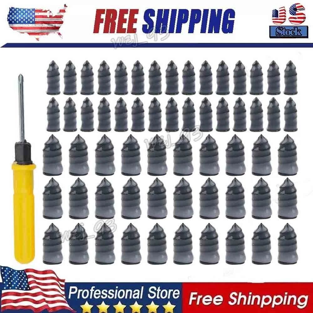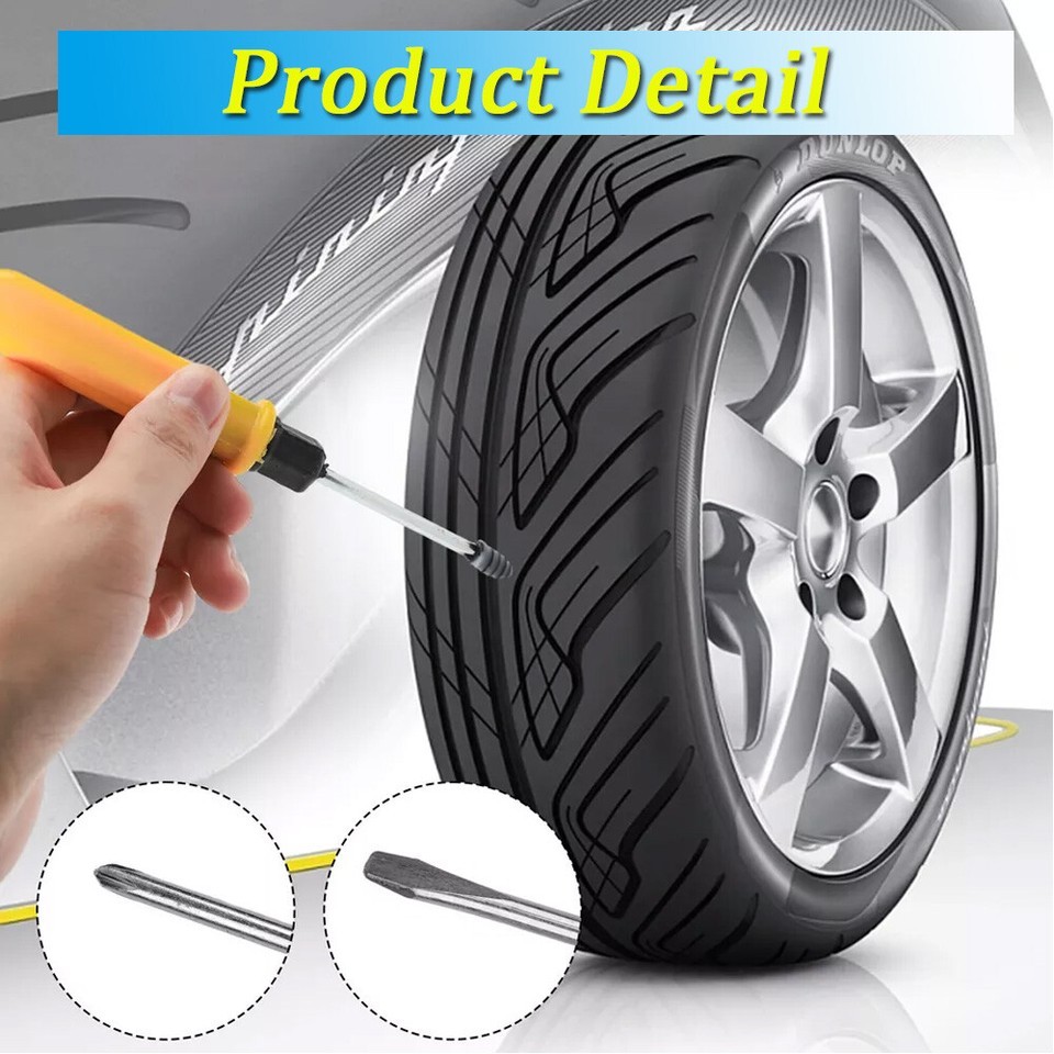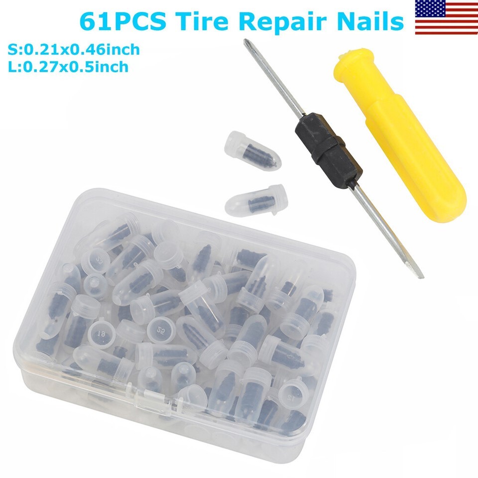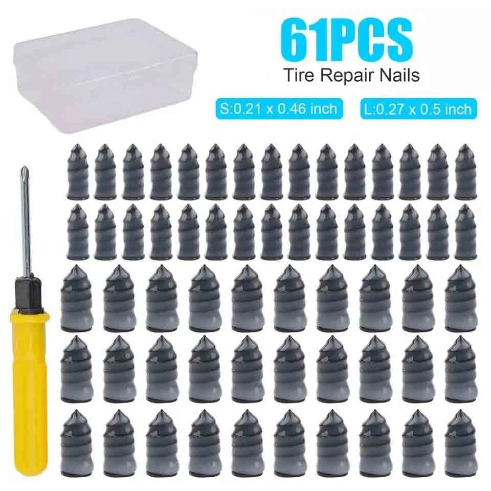 Product Feature Easy To Use: The simplest way to repair tires, Simply to insert the nail into the tire wound for a simple and efficient patching job. Repair your tire by yourself, and save your time. Emergency repair tools, easily repair punctures without removing the tire from the rim. (Note: The screwdriver is a double-ended type. One side is a cross head and the other is a flat head.) 2 Sizes: 60PCS total and we provide 2 sizes of tire repair nails for you, smaller one is approx. 0.1 x 0.4 inch and larger one is about 0.2 x 0.5 inch. Professional puncture repair nails can be used on cars, motorcycles trucks buses, and agricultural tires. Premium Material and Good Seal: These rubber tire screws are made of high-quality materials rubber and iron, wear-resistant and durable. The middle thick thread can Effectively enhance the bite force between the screw and the tire, with a good sealing effect. Easy Carrying: The package comes with storage boxes. They can be stored and carried easily. Convenient for you to store and carry with you when you are traveling, driving, cycling, and more. Mend your tire by yourself! Widely Application: These motorcycle tire repair tools have a wide range of usage, suitable for cars, mountain bikes, electric bikes, motorcycles, trucks, and other tubeless vehicles. Product Specification Type Tire Repair Kit Material Rubber Small Size about 0.1 x 0.4 inch Large Size about 0.2 x 0.5 inch Box Size about 2.7 x 2 x 0.7 inch Qty 61Pcs Placement on Vehicle Rear,Front,Left,Right Features Simple to use,Widely applied Application For cars, mountain bikes, electric bikes, motorcycles, trucks, and other tubeless vehicles. Package Included 60 x Screw tire plugs 1 x Screwdiver On Dec 7, 2025 at 19:12:53 PST, seller added the following information: