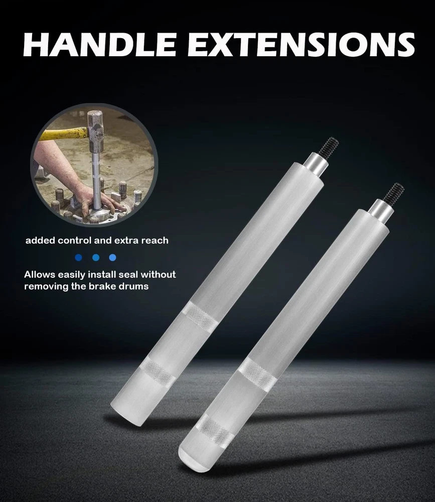 Menu Other Items Feedbacks About Us Contact Us Add To Favorites 61850 Truck Hub Seal Installer Kit, Heavy Duty Seal Drivers Set for Size Seals for Class 7 8 Trucks, Trailers and Some Medium Duty Trucks Muti-Size Hub Seal Installations -- 61850 Truck Hub Seal Installer Kit includes five different sizes drivers(sizes 4-3/16", 6-5/18", 5-31/32", 5-11/16", 6") allowing for a wide range of fit on the most popular sizes of class 7 and class 8 over the road trucks and trailers as well as some medium duty trucks. Wheel Seal Installation Tool -- Truck Hub Seal Installer Kit is designed to hold the seals for easier installation. The handle extensions allows driving seals on hubs with deep brake drums without removing the drums. Ideal for those who do wheel end work on medium to heavy duty trucks. Superior Material -- This Seal Installer kit arrives milled from top grade aluminum alloy. CNC process precision manufacturing, sturdy and durable, impact-resistant, corrosion-resistant and wear-resistant for a long-term and reliable performance. Easier Work -- Install the driver on the appropriate handle, then use the attached hardened washer between the driver and the handle to protect the aluminum driver. Easy Storage and Carrying -- Comes with a blow-molded box for placing the whole kit neatly. Product Description Yoursme 61850 Truck Hub Seal Installer Kit Function -- Specially designed to hold the seals for easier installation. Allows driving seals on hubs with deep brake drums without removing the drums. Reduce damage to other auto parts during maintenance. Easier Work -- Install the driver on the appropriate handle, then use the attached hardened washer between the driver and the handle to protect the aluminum driver. Widely fit for most popular sizes of class 7 and class 8 over the road trucks and trailers and some medium duty trucks. These tools arrives milled from super-tough aluminum alloy. It has the capability of handling literally tons of pressure. CNC process precision manufacturing,sturdy and durable, impact-resistant, corrosion-resistant and wear-resistant for a long-term and reliable performance. Package Includes This Truck Hub Seal Installer Kit includes: 5 × Seal drivers [Size: 4-13/16", 6-5/18", 5-31/32", 5-11/16", 6"]; 2 × handle extensions; 1 × washer; 1 × nut. 1 × Blow-Molded Box Blow-Molded Box For placing the whole kit neatly for easy storage and carrying. Item Specification Item model number YSM-61850 Country of Origin China Manufacturer Part Number YSM-61850 Item Weight 9.31 pounds Product Dimensions 15.24 x 12 x 3.15 inches Size A Dimensions Shipping Returns Additional Info Product Dimensions: 12.0 inches x 15.24 inches x 3.15 inches. Weight: 9.31 lb Fast shipping is very important for us. Our standard shipping service is FREE. Your order will be shipped within 1-3 business days upon full payment received. Most items are delivered within 3-5 business days, however, please allow 3-10 business days. We are shipping only to USA. We only ship to the confirmed Paypal address. We reserve the right to cancel any order for any reason at any time. We are not responsible for undeliverable addresses. We offer a 30 day return policy from checkout winning date. Your satisfaction is guaranteed! If for any reason you are unhappy with your item, just return it within 30 days for a full refund, minus shipping cost. Please contact us prior to initiating a return so that we can issue you a refund authorization. Items defective upon receipt must be packaged in their retail packaging as if new and returned with a detailed description of the problem. Return shipping fees are not refundable. We reserve the right to decline any returns if the above guidelines are not followed. All of our items, unless otherwise stated, will only run on 120 volts. Please check to make sure your country complies with these specifications. If you have a problem or question regarding your transaction please contact us before leaving any type of feedback. We will work with you to resolve any problem you may have.