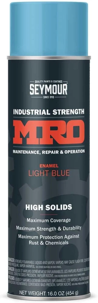 Store New Arrivals Add to Favorite View Feedback 620-1425 Industrial MRO High Solids Spray Paint, Light Blue 16 Ounce (Pack of 1) Description Item model number 620-1425 Coverage 18 square feet Unit Count 16.0 Ounce Batteries Required? No Finish High-Gloss Color Code #ADD8E6 Material solvent based Model Name Industrial MRO High Solids Package Information Can Item Form Aerosol Specific Uses For Product Interior/Exterior Paint Type Spray Included Components spray paint Item Package Quantity 1 Indoor/Outdoor Usage Outdoor Water Resistance Level Water Resistant Item Weight 1 pounds Surface Recommendation Metal,Iron,Wood Special Features Rust Resistant Special Feature Rust Resistant Part Number 0006201425 Full Cure Time 2 Days Item Volume 16 Fluid Ounces Color Light Blue Finish Type High-Gloss Global Trade Identification Number 00043281007368 Is Waterproof True Manufacturer Paint Product Dimensions 2.5 x 2.5 x 9 inches Size 16 Ounce (Pack of 1) 3-4 times the coverage of standard aerosol spray paint Does not run or sag Protects against rust, weather, oil, gasoline and most corrosive chemicals Resists abrasion and heat Has single coat hiding Product Description The most advanced high solids, VOC Compliant coating in the industry, 3-4 times the coverage of standard aerosol spray paint. A superior, lead-free industrial coating formulated for maintenance operations where maximum performance is required. Protects against rust, weather, oil, gasoline and most corrosive chemicals. MRO High Solids resists abrasion and heat, withstands high humidity, has single coat hiding and is USDA authorized. Heat resistant up to 300-Degree F. As a responsible corporate citizen, SEYMOUR of Sycamore is thoroughly committed to protecting the natural environment and ensuring the well-being of our employees. This means not only providing a safe, clean and healthy workplace, but also fulfilling our legal and social responsibilities within the community. SEYMOUR has developed coatings with waterborne and high-solids resins as an alternative to traditional solvent-based polymers. SEYMOUR products do not contain lead, cadmium, mercury, chromates or chlorinated solvents. From the Manufacturer The most advanced high solids, VOC Compliant coating in the industry, 3-4 times the coverage of standard aerosol spray paint. A superior, lead-free industrial coating formulated for maintenance operations where maximum performance is required. Protects against rust, weather, oil, gasoline and most corrosive chemicals. MRO High Solids resists abrasion and heat, withstands high humidity, has single coat hiding and is USDA authorized. Heat resistant up to 300-Degree F. As a responsible corporate citizen, Seymour of Sycamore is thoroughly committed to protecting the natural environment and ensuring the well-being of our employees. This means not only providing a safe, clean and healthy workplace, but also fulfilling our legal and social responsibilities within the community. Seymour has developed coatings with waterborne and high-solids resins as an alternative to traditional solvent-based polymers. Seymour products do not contain lead, cadmium, mercury, chromates or chlorinated solvents. ABOUT US We offer the best prices around on high quality products. Our E-store includes media such as books, movies, music and games while offering electronics, toys, sporting apparel, clothing, tools, general home, garden items and more. SHIPPING We are always working hard to ensure your package arrives as soon as possible. Please understand that some factors like weather, high postal traffic, and the performance of shipping companies are outside of our control. We offer free shipping to the lower 48 states and ship within 2 business days of payment, usually sooner. We do not accept P.O. Boxes. Please provide a physical address. RETURNS We offer a 30-Day Return Policy on items which you are not completely satisfied with. You have the option for a full-refund or an exchange of the item. No returns are available on items shipped outside of the USA. PAYMENT We accept PayPal. CONTACT US This page content is yet to come Please ad us to your favorite seller and visit again later Thank You