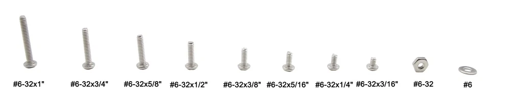 Product description: Made from 304 Stainless steel, these pan head screws have good chemical resistance and may be mildly magnetic. Length is measured from under the head Package include: 250PCS #6-32 UNC 304 Stainless Steel Pan Head Phillips Screws and Nuts Flat Washers Assortment Kit #6-32 UNC Pan Head Phillips Screws and Nuts Flat Washers Kit total 250 pieces. Come with the plastic box: List(Type,Thread/Length,Quantity): Pan Head Phillips Screws #6-32x3/16" 20PCS Pan Head Phillips Screws #6-32x1/4" 20PCS Pan Head Phillips Screws #6-32x5/16" 20PCS Pan Head Phillips Screws #6-32x3/8" 20PCS Pan Head Phillips Screws #6-32x1/2" 20PCS Pan Head Phillips Screws #6-32x5/8" 20PCS Pan Head Phillips Screws #6-32x3/4" 20PCS Pan Head Phillips Screws #6-32x1" 20PCS Flat Washers #6 50PCS Nuts #6-32 40PCS Packing contents: 250 #6-32 UNC 304 Stainless Steel Phillips Pan Head Machine Screws Nuts Flat Washers Assortment Kit in a plastic box 250PCS #6-32 UNC 304 Stainless Steel Phillips Pan Head Machine Screws and Nuts Flat Washers Assortment Kit Thread Diameter: #6; Thread Pitch: 32 Per Inch(Coarse) The assortment contains:#6-32x3/16",#6-32x1/4",#6-32x5/16",#6-32x3/8",#6-32x1/2",#6-32x5/8",#6-32x3/4",#6-32x1"(Length is measured from under the head),Each 20 piece,and Nut 40 piece,washers 50 piece They are Made of 304 stainless steel;304 stainless steel have good chemical resistance and may be mildly magnetic All contained in a compact and see through compartmented plastic Box.Easy to install