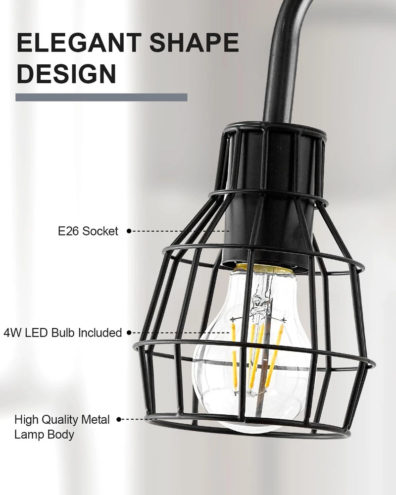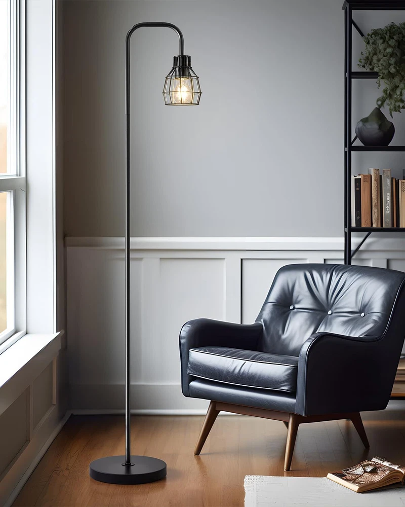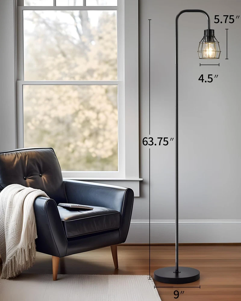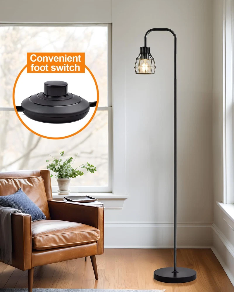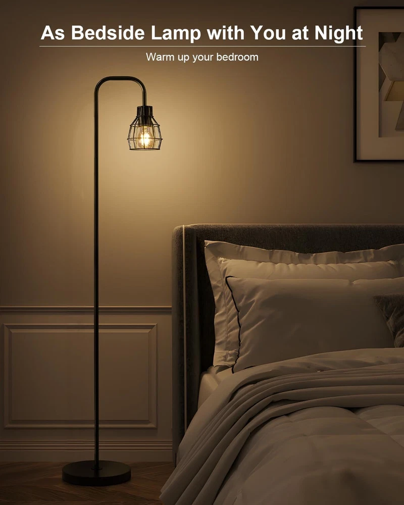 Industrial Floor Lamp: The Reading light With design of the elegant, simple black metallic construction make the modern floor lamp well matched to styles of industrial, vintage and farmhouse furnitute. The special birdcage lampshade makes it ideal for multiple styles of decoration, such as minimalist, industrial and mid-century. The multi-head design cage shade lampshade brings soft warm light you need and adds decorative effect to your room Standing Lamp with 4W LED Bulb: 4W LED bulb included! You can customize this living room floor lamp with different shapes of any E26 base light bulbs to meet your daily lighting needs and home decoration needs. This floor lamp for living room gives off warm, soft 2700K warm white lighting and creates a comfortable and gorgeous ambiance to your living room, study room, den, bedroom for instant reading, working, sleeping and dinning Modern Floor Lamp with Foot Switch: When you go home with shopping at night, you want to turn on/off the lights but find your hands are busy, Congratulations!!! Please don't hesitate to step on this foot switch! This reading light with foot switch will be your favorite choice! The foot switch design of black classic reading light adds the greatest convenience to your home lighting Minimalist floor lamp for office: The simple design makes the stand lamp suitable for various locations such as bedroom, study, living room, office, and more. The thin design saves space making it perfect for any location.The tall pole floor lams with foot switch design is very suitable for use by all groups of people, including the elderly and children ,fully enjoy the convenience of the floor lamp We always focuses on the needs of our customers, that's why we're constantly upgrading our products. We want to ensure that every one of our customers has a pleasant shopping experience