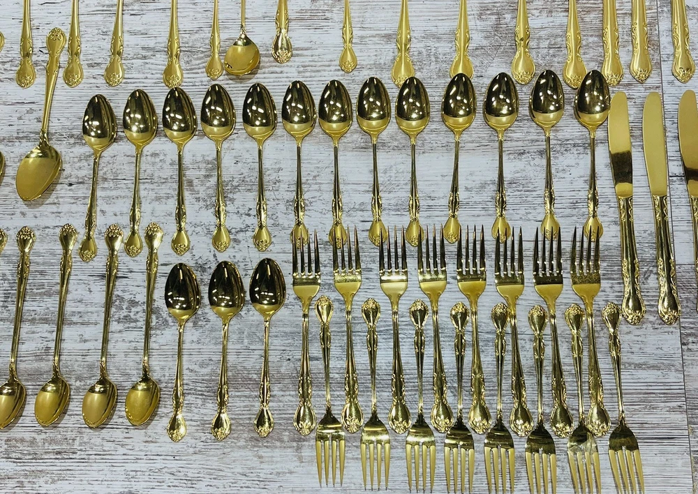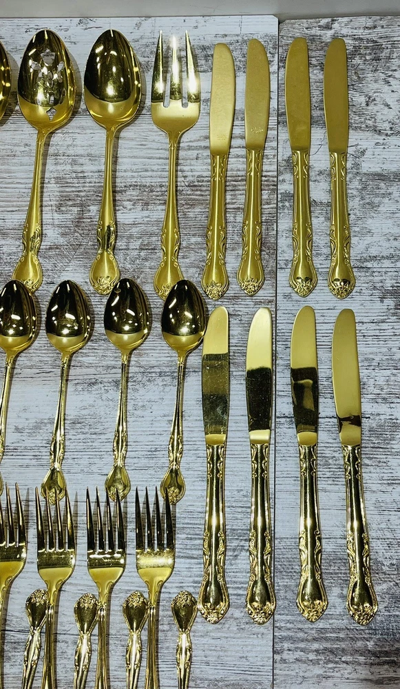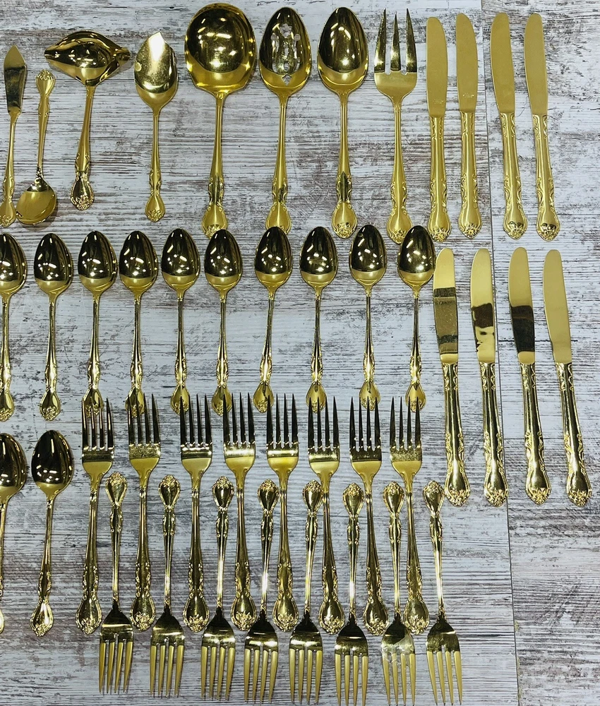 Thank you for looking at this very hard to find complete set of Norma NSCO flatware. There are 64 pieces in total with eight butter, knives, 1-large fork, 3-large different style spoons, 1-gravy, spoon 2-spreaders, 1-medium oval spoon, 16-6 inch spoons 8-7 inch spoons 8-slim 7 1/4 inch spoons 8-7 inch forks and 8-6 1/4 inch forks. If you have any questions, please feel free to send me a message and I will respond shortly.