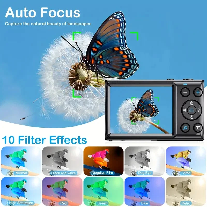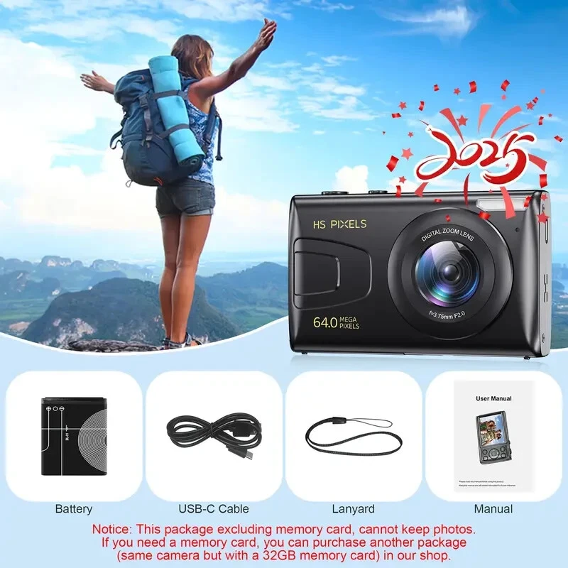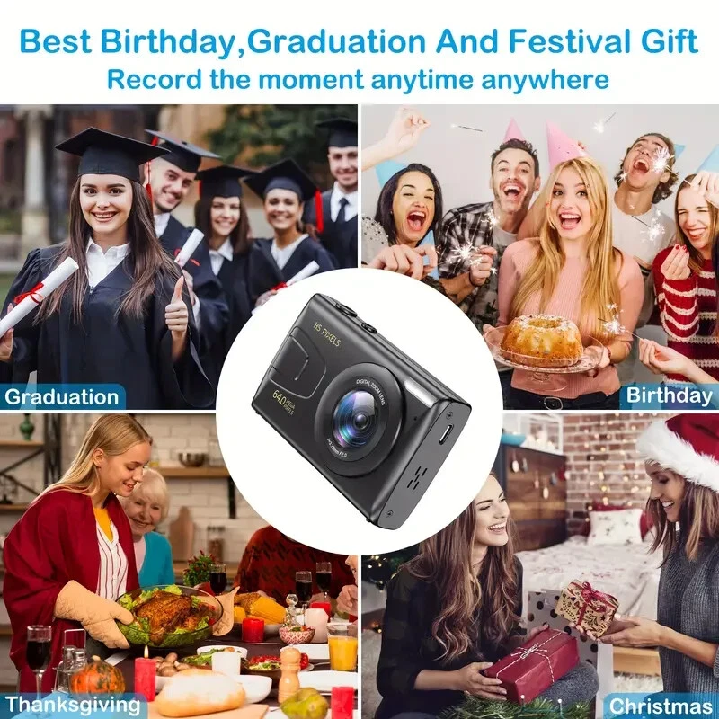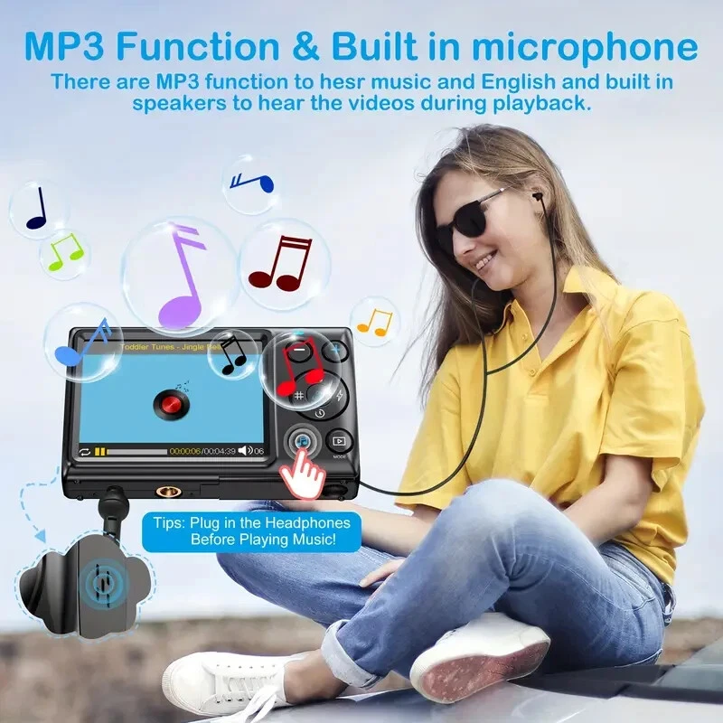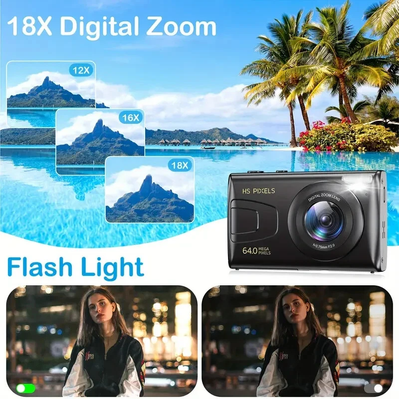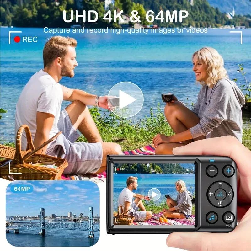 64MP 4K HD Digital MP3 Camera 18X Digital Zoom Cameras For Vlogging 2.8'' LCD Rechargeable Camera Photography Professional Camera For Beginners Support For Taking Photos, Recording Videos, And Webcam. With MP3 features, eligible for music and movies.