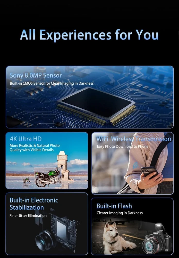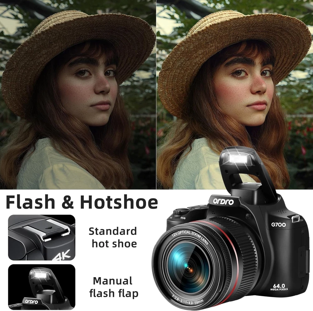 Store New Arrivals Add to Favorite View Feedback Contact 64MP Digital Camera for Photography, 4K Vlogging Cameras for Youtube with 3” Flip Screen,12X Optical Zoom & 30X Digital Zoom, 64GB Card, Wifi& Autofocus with Flash, 2 Batteries Description Battery Cell Type Lithium Ion Has Color Screen Yes Are Batteries Included Yes Photo Sensor Resolution 64 MP Memory Storage Capacity 256 GB Focus Type Manual Focus Focus Features Autofocus and Manual Focus Auto Focus Technology Face Detection Warranty Type Extended Movie Mode Yes Image stabilization Optical, Digital Photo Sensor Technology CMOS Aperture modes F2.8-F3.1 Autofocus Yes Color Black Photo Sensor Size 1/2.8-inch Lens Type Wide Angle Audio Recording Yes Optical Zoom 12 x Effective Still Resolution 64 MP Sensor Type CMOS Media Speed up to 90 MB/s Video Capture Format 4k Model Number G801 Battery Weight 19 Grams Exposure Control Manual Minimum Focal Length 4.9 Millimeters Model Name G800 Shooting Modes Shutter Priority Battery Type 19 grams (weight) Number of Batteries 1 Lithium Ion batteries required. (included) Screen Size 3 Inches Specific Uses For Product vlogging, high-resolution photography, beginner photography Expanded ISO Maximum 3200 Digital Zoom 30 x Expanded ISO Minimum 100 File Format MP4 Image Capture Type Video Compatible Mountings Canon EF-M Wireless Technology Bluetooth, Wi-Fi Zoom Optical Zoom Supported File Format MP4 Connectivity Technology Wi-Fi Maximum Focal Length 59 Millimeters Viewfinder Optical Night vision Yes Focal Length Description 59 millimeters Special Feature 4K video resolution and 3-inch flip screen Display Type LCD Frame Rate 30 Touch Screen Type Capacitive Form Factor DSLR Skill Level Novice Digital-Still No Maximum Aperture 2.8 f Flash Memory Type SD Image Stabilization Optical, Digital Video Resolution 2880p Audio Output Type Speakers Built-In Media Camera Body & Accessories Camera Flash Built-In External-Memory Size 64 GB Camera Lens Wide Angle Continuous Shooting 30 fps 64MP 4K Digital Camera: This digital cameras provide 4k video resolution and 64 Megapixel Sensor for photographers. With its high-resolution sensor, camera can capture detailed images with rich colors and contrast. Our digital cameras offer more customization options for beginner photography, and you can easily adjust the flash, ISO, and other settings to meet your need. In short,our vlogging cameras will be ideal for both photography and video recording! Versatile 4K Vlogging cameras for Youtube:With many video/shooting modes,this 4K vlogging camera for YouTube is suitable as vlog production tools and multipurpose cameras,such as Time-lapse & continuous shooting,fast & slow motiom,ect.Those make your videos and new career more unique.Two rechargeable batteries and battery charge help you vlogging without worrying the power supply. Support Auto focus and Manual Focus : It will make it easy for photographers to focus on capturing moving moments, and manual focus helps you to accurately focus the subjects. Besides, Our cameras offer more customisation options for Beginner Photography, and you can easily adjust the flash, ISO, filter and other settings to meet your need Features 360X Zoom Versatile video/vlogging camera for YouTube: 12x optical zoom combined with 30x digital zoom gives the camera a 360x powerful zoom effect, which allows you to take pictures of landscapes from a long distance and capture every moment of your life clearly. PC camera option & HDMI output:Our digital cameras to be convenient for transferring. You can use the USB port to link to your PC and use camera as a webcam; or you can use WiFi and APP to transfer your data to your mobile phone; and you can also use the HIDM port to play the videos you take on a larger screen. Convenient and efficient linking methods will bring more convenience and help you save and edit your favorite videos. Multiple Photo Video Modes with 3 inch Flippable Screen : This 4K digital camera supports intervel photograph,camera timer,continuous shooting,4k time lapse movie etc. Manual Exposure/Fliter Mode/Intelligent Scene/Continuous Mode/Scene Mode/Programe /Shutter Priority/Aperture Priority. Perfect for photography beginner and lover. Package Includes:This digital camera with rotatable screen boasts a sleek design, including Digital Camera and lens cap x 1, Lithium Battery x 2, USB cable x 1, User Manual x 1, 64GB SD card x 1,Camera Lanyard x 1, Card Reader x 1. Product Description This 4k digital camera would be good for someone just starting out, NOT for professional and Photographer. Its good enough for entry level users and beginners. It’s easy to use, multi-function and easy to carry. 4K Digital Camera with 3inch Flippable Screen for Photography The video showcases the product in use. The video guides you through product setup. The video compares multiple products. The video shows the product being unpacked. Optical zoom does not change the size and quality of the original image,so the video camera achieves greater magnification while maintaining image quality. Allows you to shoot both long distances and intimate close-ups. 1 Sample Image 2 Sample Image 3 Sample Image 1 Other Features 2 Filter Mode Built-in Wi-Fi APP and HDMI Output Webcam Video Call Function ABOUT US We offer the best prices around on high quality products. Our E-store includes media such as books, movies, music and games while offering electronics, toys, sporting apparel, clothing, tools, general home, garden items and more. SHIPPING We are always working hard to ensure your package arrives as soon as possible. Please understand that some factors like weather, high postal traffic, and the performance of shipping companies are outside of our control. We offer free shipping to the lower 48 states and ship within 2 business days of payment, usually sooner. We do not accept P.O. Boxes. Please provide a physical address. For shipping outside of the continental USA, we only use eBay's Global Shipping Program.The i