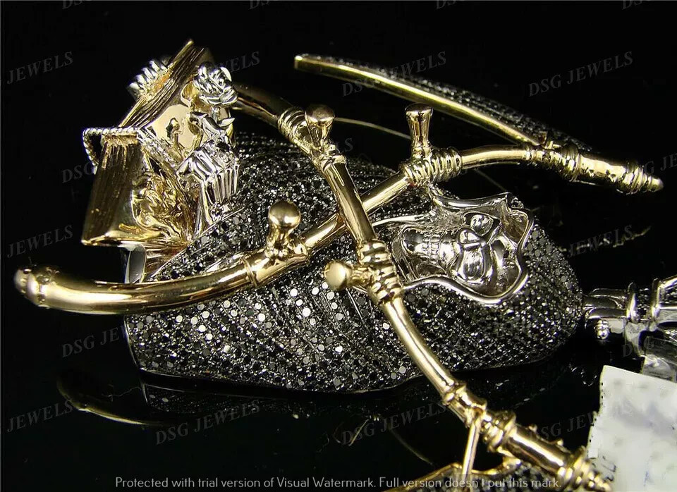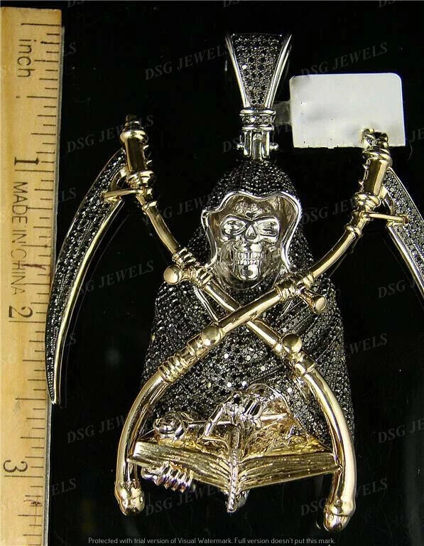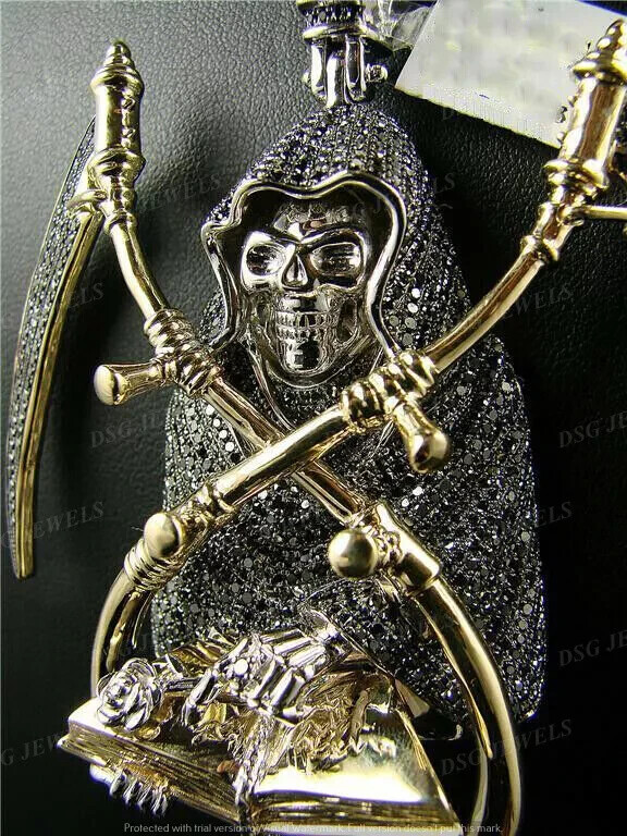 6.50Ct Black Moissanite Ghost Grim Reaper Skull Pendant 14k Yellow Gold Plated Each handmade piece is crafted with the perfect conflict-free alternative to a mined diamond. You can feel good knowing that human life was not sacrificed to make your jewelry. Our stones are cut and faceted to the highest quality standards to achieve maximum brilliance. The eye-catching sparkle of this piece is absolutely breathtaking! Our simulated diamonds and gems are guaranteed the highest quality with excellent geometrical cut as well as absolutely bright D color and VVS1 clarity that make these stones visually indistinguishable from real naturally mined diamonds that cost thousands of dollars. Customization: Want to add your personal touch to this piece? Contact us and we will create one just for you. Most customization requests include: 1) Ring Resizing 2) Redesign 3) Metal Change (Silver/10K Gold / 14K Gold /18K Gold) 4) Metal Color Change (White/Yellow/Rose/Black) 5) Color Stones (White Topaz, Pink Sapphire, etc) 6) Engraving (Name or any message - no of characters subject to size of jewelry) 7) Anything under the sun that catches your fancy, we will give it a try :) Payment: We accept payment via PayPal only. You can also pay using your credit card, via paypal, by using paypal as a guest. Payment is required within 3 days of the sale of an item. Shipping: International shipments are usually delivered within 2 to 6 weeks, depending on the time taken to clear customs. We are not responsible for any delays due to customs. Please note that all countries charge a duty on imported goods. A customs clearing charge is also imposed in many countries. We are not responsible for the amount of duty or any other related charges. Terms & Sale: We want to ensure that you are completely satisfied with your purchase. If not, then please let us know before leaving any feedback and allow us to work with you to completely resolve any issues that you might be facing. You can return the item for a full refund LESS shipping, within 14 days of item(s) receipt date. There is no restocking fee. 100% Satisfaction Guaranteed. All returns must reach us within 14 days after the item was delivered to you the item must be in the original condition and with the original tags attached. Contact Us: You can contact us by clicking on 'ask seller a question'