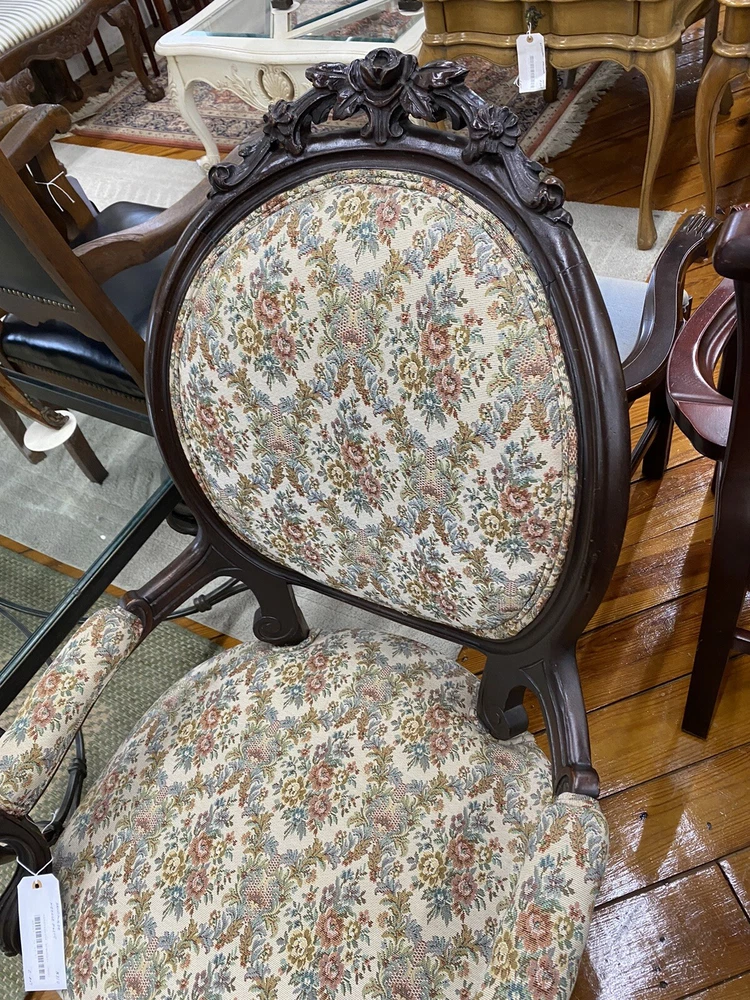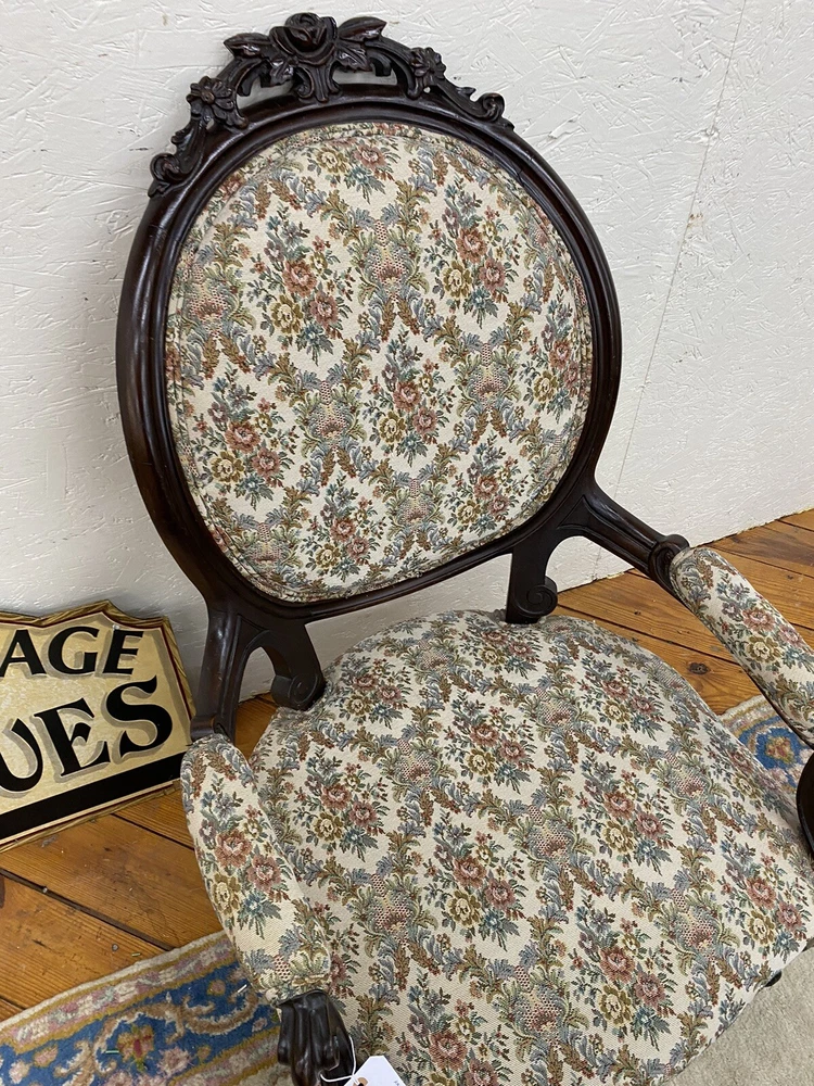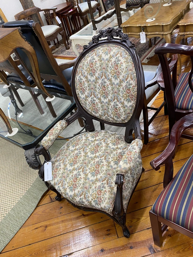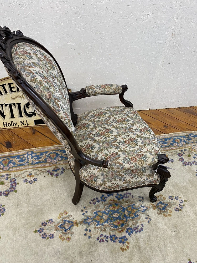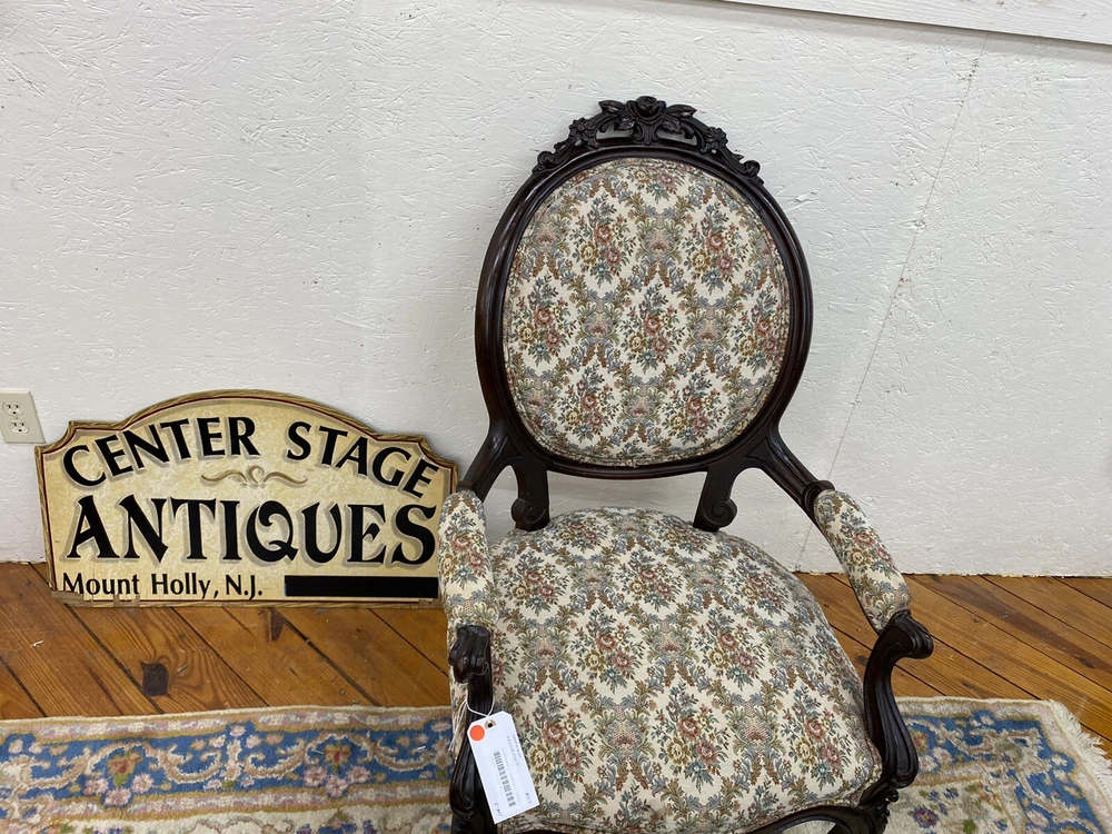 Item Description- Antique walnut Victorian armchair. It is tight and sturdy and in very good condition. Age- circa 1880 Size- 26"W x 31"D x 40"H Seat 17"H This item can be packaged, insured and shipped via freight directly to your home. Please ask for a home delivery quote before purchasing this item. SHIPPING: Center Stage does our own deliveries to New York, Pennsylvania and New Jersey including the New York city and Philadelphia area every 2-4 weeks at very reasonable rates. For a delivery quote please email us with a city and zip code. WE SHIP ANYWHERE IN THE USA. IF YOU NEED A HOME DELIVERY QUOTE EMAIL US YOUR ZIP CODE. THE EBAY SITE IS SOMETIMES BROKEN AND WILL NOT LET YOU PURCHASE AN ITEM SAYING WE DO NOT SHIP TO YOUR LOCATION. THE WORK AROUND IS TO MAKE AN OFFER FOR THE AMOUNT STATED ON THE LISTING THEN WAIT FOR ME TO INVOICE YOU BEFORE TRYING TO PAY. SHOWROOM NUMBER 609 261 0602. BUYER IS RESPONSIBLE TO PAY SHIPPING COSTS ON ALL ITEMS! If you need home delivery email us with your zip code for a quote. Large items or those over 100 lbs. will need freight shipping and we are happy to provide a free quote but you will pay the shipper directly. Expect delivery times on these items to be approx. 2-6 weeks depending on your location. All local deliveries within 50 miles and to NYC are done by Center Stage Antiques. If you are picking up from our store you will need to contact us with a pick up time. NJ residents and buyers picking up are subject to NJ sales tax. Center Stage Antiques has been at its current location for 30 years, selling high quality used estate furnishings at a fraction of the cost. All items are sold in their original condition and ready to place in your home. If you have any specific questions regarding the condition of an item please email us before bidding. We are a small family business who do everything ourselves including packaging and local deliveries.