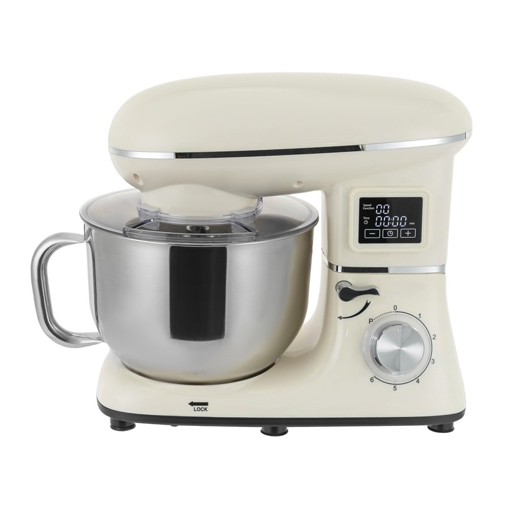 Package Included 1* Kitchen Mixer 1* Douch Hook 1* Beater 1* Whisk 1* Spatula 1* English Manual Application It can be used in kitchens, small restaurants, bakeries, etc. for pizza, waffles, milkshakes, bread, dough, whipped cream, marble cakes, mincemeat, and more! Specification Color: White Style: Modern Material: ABS Mount Type: Free Standing Assembly Required: Yes Control Type: Knob Screen Type: LCD Model: SM-1505HL Power Source: Corded Electric Plug Type: US Standard Motor Type: Pure Copper Motor Volatge: AC 110V 50-60Hz Power: 1350W Speed Gears: 6 +1(Pulse Function) Time: ±30s Per Click Noise: <75db Capacity: 6.2L/6.5Qt Product Size: 38.9*23.8*33.6cm/15.31*9.37*13.23 inch Mixing Bowl Size(D*H): 22.3*17.2cm/8.78*6.77 inch Package Size: 40.6*36.3*24.7cm 6.5-QT 1350W 6-Speed Food Mixer Kitchen Electric LCD Stand Mixer With Bowl USA Description Look at our kitchen mixer, it is a helpful assistant for your kitchen. It is made of premium materials, safe to use and durable. This machine is compact and lightweight, so you can easily store it in the cabinet. As a daily mixer, it is easy to operate and clean up, allowing you to conveniently deal with different kinds of foods. Key Features Build to Last : The product is made of high-quality ABS, making it durable, and not easy to rust and corrosion, so it can remain beautiful and practical for a long time. Powerful and Efficient: It has a strong power (1350W) and a knob to adjust 6+1 mixing speeds, 1-3 speed for bread and pasta dough, 2-4 speed for butter, cookies, and salad, 5-6 speed for egg white, cream, cake, and sauces, and P for pulse function to make the texture of bread and butter more creamy. Thoughtful Design: The LCD screen can be set to time (±30s per click) and has a regular reminder function, allowing you to maximize your freedom without having to keep an eye on the mixing progress. High Safety: The machine's head-up power failure and overheating protection can ensure your safety when using as well as easy for you to replace the accessories, in addition, the cooling holes can dissipate the heat in time to ensure the stability of the product when using. Excellent Performance: The deepened bowl can thoroughly mix flour, eggs, and other ingredients inside. It can hold 6.5 qt of ingredients and is equipped with a whisk, beater, and dough hook to facilitate the mixing of different ingredients and meet the dietary needs of you and your family. Ready to Use: The assembled host, practical accessories, and detailed English manual make it very convenient and time-saving for you to use it directly after receiving it. Compact and Lightweight: With its compact size (15.31*9.37*13.23 inches) and lightweight ( 13.23 lbs ), you can use it conveniently or store it in your cabinet without taking up too much space, making it suitable for small kitchen, apartment, or limited storage space. Protective Package: We use foam to wrap this product in order to minimize damage to the product during transportation. Ideal Gift: Because of its powerful functions and practicality, you can give it to your friends as a Christmas, Thanksgiving, or housewarming gift. Details Non-slip Feet: Six non-slip feet on the base prevent sliding and ensure product stability. Clear Splash-proof Lid: It helps you with process monitoring and facilitates pouring water, milk, or other liquid ingredients(not included) through the hole in the splash guard when needed while preventing ingredients from running out of the bowl, making cleanup easier. Practical Spatula: It helps you scoop out the ingredients and also makes for a more even distribution of the ingredients before blending. Comfortable Handle: The handle on the bowl makes it easy to grip and pour out your mixed ingredients(not included). Application It can be used in kitchens, small restaurants, bakeries, etc. for pizza, waffles, milkshakes, bread, dough, whipped cream, marble cakes, mincemeat, and more! Specification Color: White Style: Modern Material: ABS Mount Type: Free Standing Assembly Required: Yes Control Type: Knob Screen Type: LCD Model: SM-1505HL Power Source: Corded Electric Plug Type: US Standard Motor Type: Pure Copper Motor Volatge: AC 110V 50-60Hz Power: 1350W Speed Gears: 6 +1(Pulse Function) Time: ±30s Per Click Noise: <75db Capacity: 6.2L/6.5Qt Product Size: 38.9*23.8*33.6cm/15.31*9.37*13.23 inch Mixing Bowl Size(D*H): 22.3*17.2cm/8.78*6.77 inch Package Size: 40.6*36.3*24.7cm/16*14.3*9.7 inch Gross Weight: 6.6kg/14.6 lb Net Weight: 6kg/13.23 lb Package Included 1* Kitchen Mixer 1* Douch Hook 1* Beater 1* Whisk 1* Spatula 1* English Manual Notes Please note that this product does not include any food ingredients. Before purchasing, please make sure that the capacity of this product is available for your needs. It is suitable for the new baker, 1-2 members, or small family in everyday use. If you are a pro-baker or need to handle large batches of mixing, please consider other larger-capacity mixers. Please read the English manual carefully before use and pay particular attention to the safety instructions contained therein. Please allow the slight color difference caused by the shooting light and 1-3 cm error due to manual measurement, and make sure you do not mind before ordering. Payment Delivery details Terms of sales About us Contact us Payment We accept ebay payment 。 Fees such as import duties, taxes are not included in the item price or shipping costs. These charges are the buyer's responsibility. Delivery details Shipping: 2-9 working days to: USA Terms of sales We maintain high standards of excellence and strive for hundred percent customer satisfaction. Feedback is very important to us. We hope that you contact us immediately before you give neutral or negative feedback, so that we can address your concerns. It is impossible to address issues if we do not know about them! About us Your satis faction is our ultimate goal. We work hard to earn your trust and future business. Our certified tech