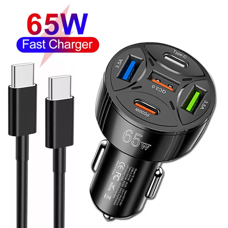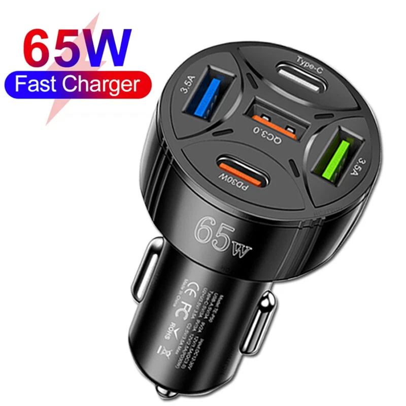 Description 65W USB Car Charger Fast Charging 5 Ports PD Type C Car Phone Charger Adapters For iPhone 15 Xiaomi Samsung Quick Charger In Car 1. Intelligent parallel connection, charging acceleration, built-in intelligent upgrade chip, trickle charging, charging speed of 30%. 2. With a high power of 65W, it can quickly charge five devices without damaging them. 3. Multiple protection with built-in intelligent chips to ensure safe device charging. 4. Overvoltage protection/overheating protection/overcurrent protection/battery cell protection/temperature protection/overcharge protection/overload protection/short circuit protection.