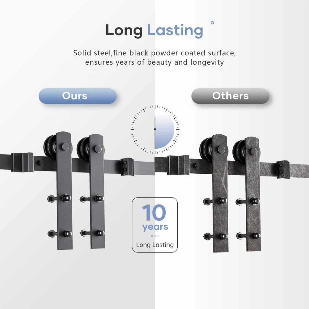 ใ๐๐ฒ๐ฎ๐๐ ๐๐๐๐ใ Solid steel,fine black coated surface,anti-corrosion ensures years of beauty and longevity.Slide Like Butter ,Ball bearing roller slide smoothly and quietly,Tested Beyond 100,000 Rolls.All items have been multiple inspected before on market. ใ๐ช๐ถ๐ฑ๐ฒ๐น๐ ๐๐ฝ๐ฝ๐น๐ใ Our hardware suitable for both modern and rustic style,you can apply for aisle,garage,kitchen,bedroom and so on. ใ๐ฅ๐ฒ๐บ๐ถ๐ป๐ฑ๐ใ Fit up to 40" Wide Door;Fit Door Thickness 1-3/8" ~ 1-3/4"(35~45mm);Door Weight Capacity 220lbs. Package Includes:(2)3.3ft Rail,(5)Spacer,(2)Rollers,(2)Door Stops,(1)Floor Guide,(1)12inch Handle Set.NOT INCLUDE DOOR ใ๐๐ฎ๐๐ ๐๐ป๐๐๐ฎ๐น๐นใ We provide step-by-step graphic & text installation parsing manual,you can also get soft online copy and professional installation guide from our online service. ใ๐ฎ๐ฐ ๐๐ผ๐๐ฟ๐ ๐ฆ๐๐ฎ๐ป๐ฑ ๐๐ใ specialize in sliding door and hardware many years,if there anything missed or broken,pls let us know,we are whole day online to solve your problem.