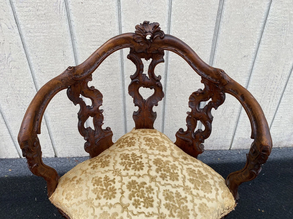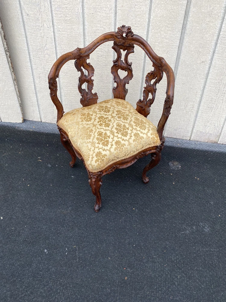 Item Description- Super quality hand made corner chair. It is tight and sturdy and in very good condition. Age- circa 1920 Size- 25"W x 25"D x 34"H This item can be packaged, insured and shipped via freight directly to your home. SHIPPING: Center Stage does our own deliveries to New York, Pennsylvania and New Jersey including the New York city and Philadelphia area every 2-4 weeks at very reasonable rates. For a delivery quote please email us with a city and zip code. WE SHIP ANYWHERE IN THE USA. IF YOU NEED A HOME DELIVERY QUOTE EMAIL US YOUR ZIP CODE. THE EBAY SITE IS SOMETIMES BROKEN AND WILL NOT LET YOU PURCHASE AN ITEM SAYING WE DO NOT SHIP TO YOUR LOCATION. THE WORK AROUND IS TO MAKE AN OFFER FOR THE AMOUNT STATED ON THE LISTING THEN WAIT FOR ME TO INVOICE YOU BEFORE TRYING TO PAY. SHOWROOM NUMBER 609 261 0602. BUYER IS RESPONSIBLE TO PAY SHIPPING COSTS ON ALL ITEMS! If you need home delivery email us with your zip code for a quote. Large items or those over 100 lbs. will need freight shipping and we are happy to provide a free quote but you will pay the shipper directly. Expect delivery times on these items to be approx. 2-6 weeks depending on your location. All local deliveries within 50 miles and to NYC are done by Center Stage Antiques. If you are picking up from our store you will need to contact us with a pick up time. NJ residents and buyers picking up are subject to NJ sales tax. Center Stage Antiques has been at its current location for 30 years, selling high quality used estate furnishings at a fraction of the cost. All items are sold in their original condition and ready to place in your home. If you have any specific questions regarding the condition of an item please email us before bidding. We are a small family business who do everything ourselves including packaging and local deliveries.
