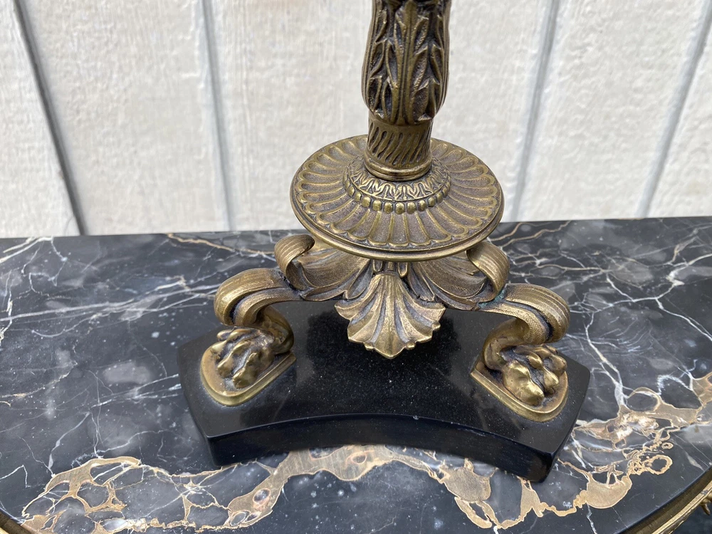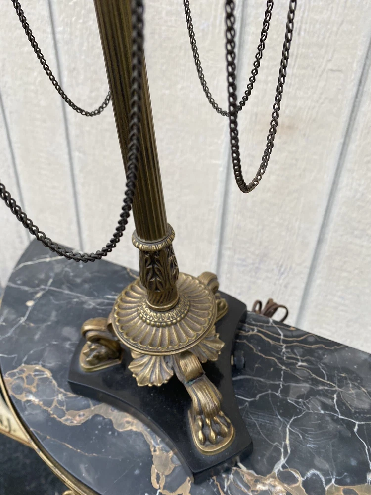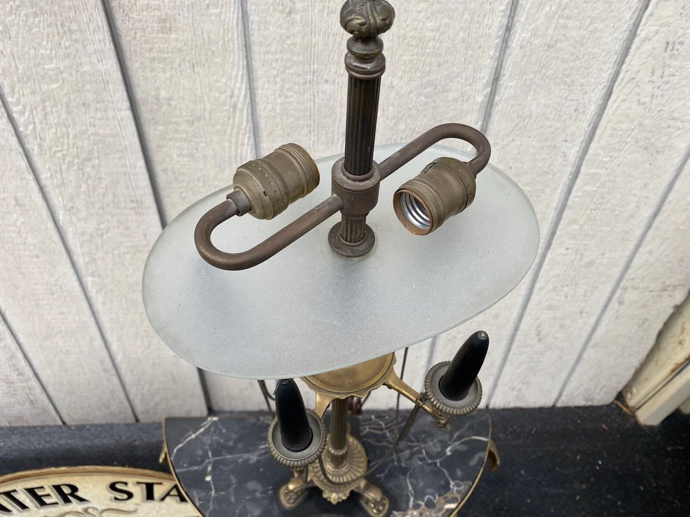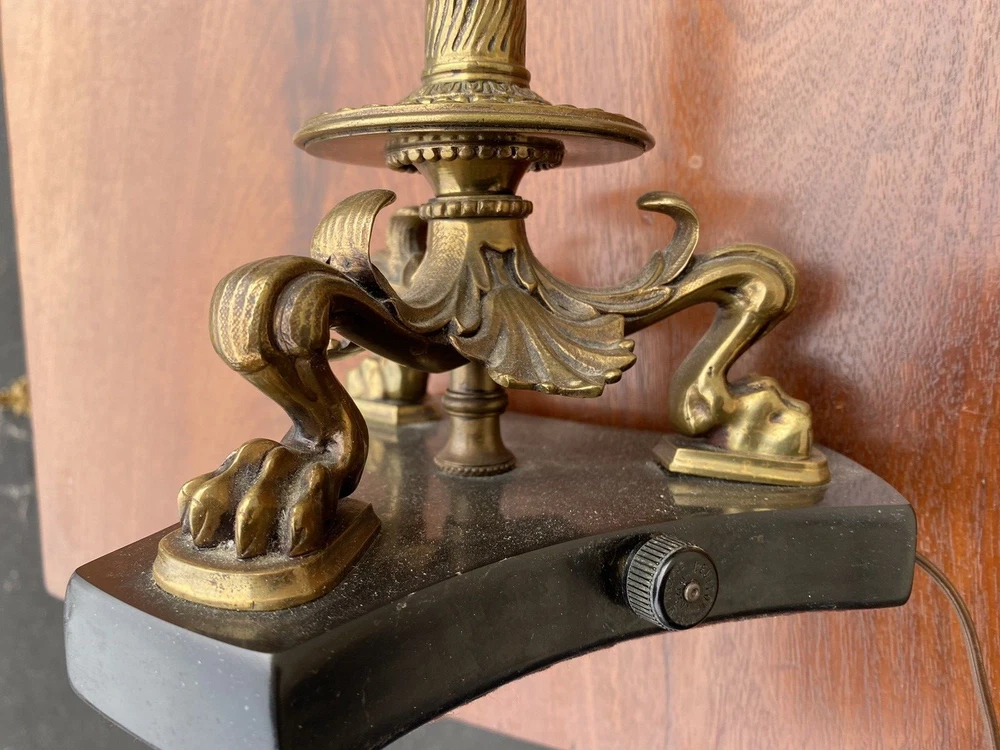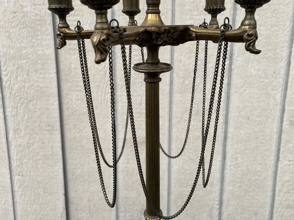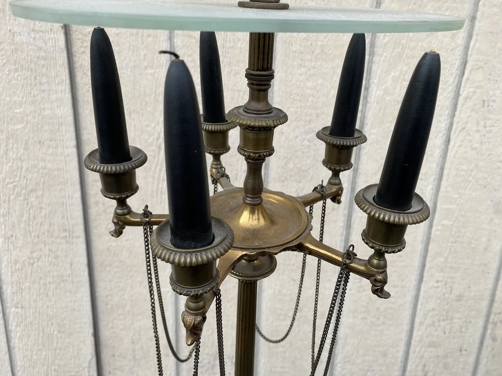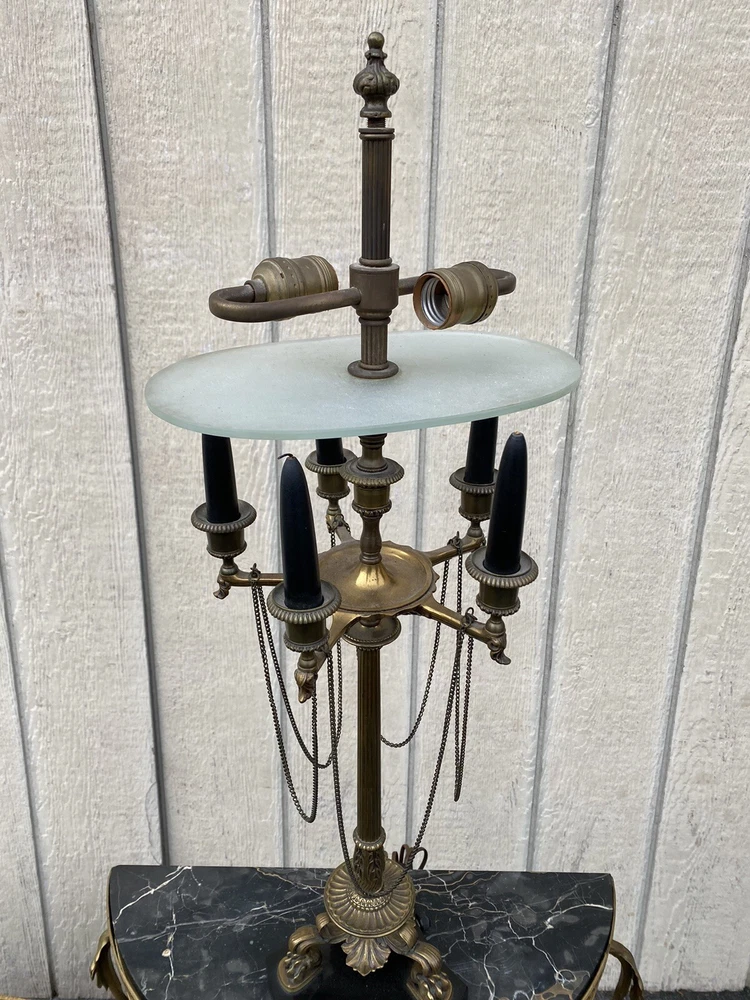 Item Description- Quality candelabra table lamp. It is in very good working condition. Age- circa 1940 Size- 11" x 9" x 30"H This item can be packaged, insured and shipped via freight directly to your home. SHIPPING: Center Stage does our own deliveries to New York, Pennsylvania and New Jersey including the New York city and Philadelphia area every 2-4 weeks at very reasonable rates. For a delivery quote please email us with a city and zip code. WE SHIP ANYWHERE IN THE USA. IF YOU NEED A HOME DELIVERY QUOTE EMAIL US YOUR ZIP CODE. THE EBAY SITE IS SOMETIMES BROKEN AND WILL NOT LET YOU PURCHASE AN ITEM SAYING WE DO NOT SHIP TO YOUR LOCATION. THE WORK AROUND IS TO MAKE AN OFFER FOR THE AMOUNT STATED ON THE LISTING THEN WAIT FOR ME TO INVOICE YOU BEFORE TRYING TO PAY. SHOWROOM NUMBER 609 261 0602. BUYER IS RESPONSIBLE TO PAY SHIPPING COSTS ON ALL ITEMS! If you need home delivery email us with your zip code for a quote. Large items or those over 100 lbs. will need freight shipping and we are happy to provide a free quote but you will pay the shipper directly. Expect delivery times on these items to be approx. 2-6 weeks depending on your location. All local deliveries within 50 miles and to NYC are done by Center Stage Antiques. If you are picking up from our store you will need to contact us with a pick up time. NJ residents and buyers picking up are subject to NJ sales tax. Center Stage Antiques has been at its current location for 30 years, selling high quality used estate furnishings at a fraction of the cost. All items are sold in their original condition and ready to place in your home. If you have any specific questions regarding the condition of an item please email us before bidding. We are a small family business who do everything ourselves including packaging and local deliveries.