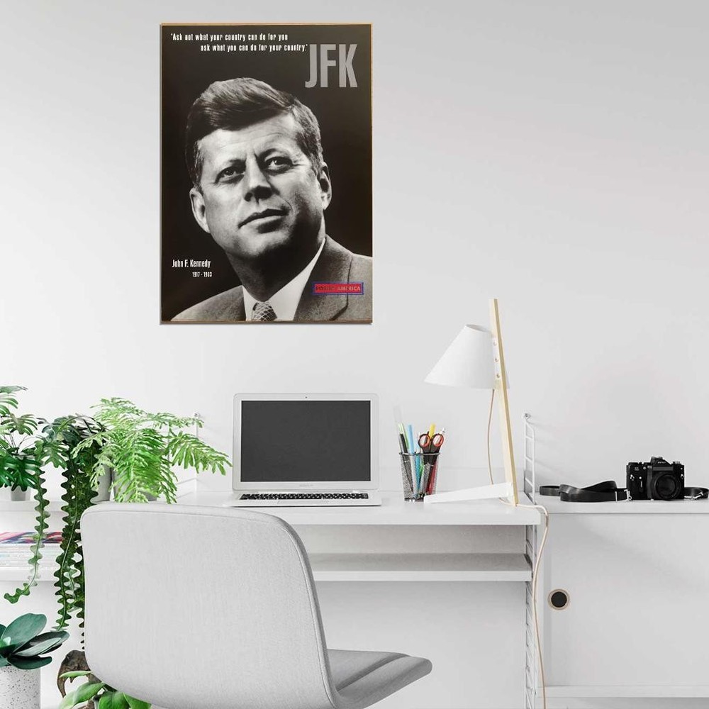 662170 John F. Kennedy Jfk Black And White Vintage Tribute 2000 Poster Brand new stunning art premium print poster, great as a gift, souvenir, home decor or for collection! Size available: LARGE - 24x36 inches / 60x90 cm REGULAR - 18x24 inches / 45x60 cm SMALL - 12x16 inches / 30x40 cm Poster comes with a SINGLE-SIDE GLOSSY LAMINATION for FREE! Exactly fits standard size poster frames - 36x24, 24x18, 16x12 in.
