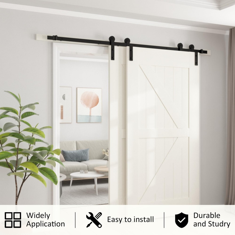 $ 18.128FT Double Sliding Barn Door Hardware Kit for Wood Slabs - Garage Installation