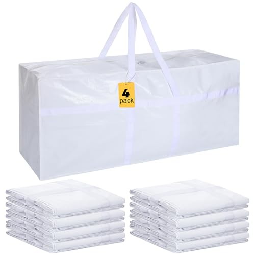 Return Policy Fast Delivery Trusted seller 4 Pcs 66 Gallon Large Moving Bags with Zipper and Handles Foldable Storage Duffle Bags Heavy Duty Extra Large Totes for College Dorm Travel Clothes Blankets Bedding Moving(White) Product Description Robust Material: experience quality with our PE made white moving bags for college; Engineered to handle the heavy loads, the material is strong, reliable, and known to resist wear and tear; Moreover, it is waterproof to keep your items efficiently away from dampness and dust Generous Size and Capacity: with dimensions measuring approximately 45 x 22 x 16 inches (or 115 x 55 x 40 cm), each large storage bag bag offers an impressive capacity of about 66 gallons (250 liters); Such space allows flexibility for you to store a wide range of items conveniently Package Inclusion: the package comes with 4 large moving bags, maximizing your storage potential; An affordable and efficient solution, these storage bags are nice for organizing your space and making your space ordered Strength Handles: don't worry about moving around heavy storage items; Our heavy duty moving bags are equipped with extra strength handles; They are designed to accommodate heavy load while ensuring comfort in handling, making it easier for you to relocate the bags as needed Multipurpose Wide Application: whether you need to store winter clothing, toys, blankets, or paperwork, these large storage bags have got you covered; Their versatile nature makes them suitable for couch cushions, bedding, clothes, quilts, pillows, patio rugs, sheets, blankets, sporting equipment, holiday decorations, and other household items Shipping Returns Payment Shipping Shipping is FREE to all addresses other than APO/PO boxes in the lower 48 states. All our stock ships from US-based warehouses. Shipped via USPS or UPS (depending on location and package weight) Unless stated otherwise, all orders will ship within 24-72 hours of your payment being processed. Check our feedback to see the great reviews of FAST shipping we offer. Returns Seller does not accept returns Payment We currently accept payment via eBay managed payments only. Once payment is cleared, we will dispatch your shipment within 1-3 business days. Please refer to the "Shipping" tab for more information regarding shipping speed to your destination.