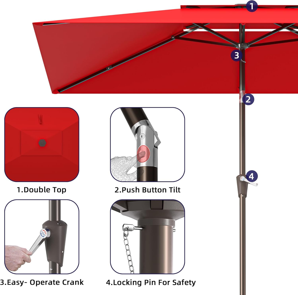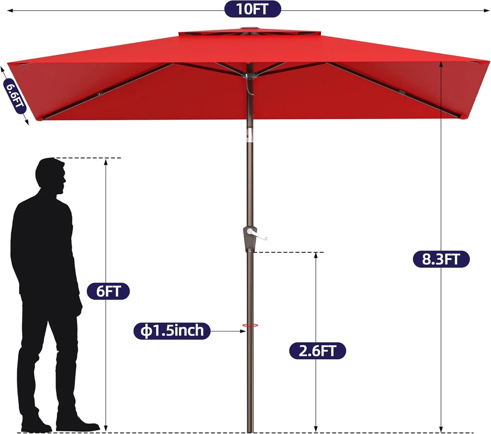 Store New Arrivals Add to Favorite View Feedback Contact 6.6X10Ft Rectangular Patio Umbrella, 2 Tiers Outdoor Table Umbrellas with Push Button Tilt and Crank for Patio, Pool, Backyard, Deck, Picnic, Yard (Wine Red) Description Color Wine Red Shape Rectangular Package Dimensions 54.72 x 5.71 x 5.71 inches Item Weight 14.74 pounds Shaft Material Aluminum Handle Material Ethylene Vinyl Acetate Frame Material Aluminum Recommended Uses For Product Patio Target Audience Adult Specific Uses For Product Sun Premium Material:The 2 Tiers outdoor umbrella patio is made of 100% polyester fabric with fade resistant, can provide 98% UV protection Easy Use:Pakarde rectangle patio umbrella operates with crank lifting system for your easy and quick use. Push-button tilt 45°design, let your outdoor umbrella be adjustable to keep the sun at your back all the time Updated Design:Rectangular patio umbrella are all aluminum umbrella bones and 6 heavy duty umbrella ribs.Assembled umbrella ribs design saves storage space. Connect the umbrella ribs before opening the umbrella Wide Shade:Patio umbrellas is 6.6' X 10',which can accommodate a table and chairs for 4-6 people and offers plenty of shade for optimal coverage, allowing you to feel cool in the hot summer Umbrella Base is Not Included: Umbrella base is not included. Outdoor patio umbrella perfect for your patio, garden, pool. Please contact us with any problem at anytime Product Description ABOUT US We offer the best prices around on high quality products. Our E-store includes media such as books, movies, music and games while offering electronics, toys, sporting apparel, clothing, tools, general home, garden items and more. SHIPPING We are always working hard to ensure your package arrives as soon as possible. Please understand that some factors like weather, high postal traffic, and the performance of shipping companies are outside of our control. We offer free shipping to the lower 48 states and ship within 2 business days of payment, usually sooner. We do not accept P.O. Boxes. Please provide a physical address. For shipping outside of the continental USA, we only use eBay's Global Shipping Program.The item is shipped to KY and then sent to the rest of the world. International customers are responsible for all duties and taxes. Continue to check out in order to calculate costs for shipping the item to your country. Messages regarding eBay's Global Shipping Program MUST be directed at eBay EXCLUSIVELY. RETURNS We offer a 30-Day Return Policy on items which you are not completely satisfied with. You have the option for a full-refund or an exchange of the item. No returns are available on items shipped outside of the USA. PAYMENT We accept PayPal. CONTACT US This page content is yet to come Please ad us to your favorite seller and visit again later Thank You CUSTOMER SATISFACTION We try our very best to make sure every customer is completely satisfied. If there's a problem, message us! We're happy to help. WE ACCEPT Copyright © 2021 AutoDS. | All Rights Reserved