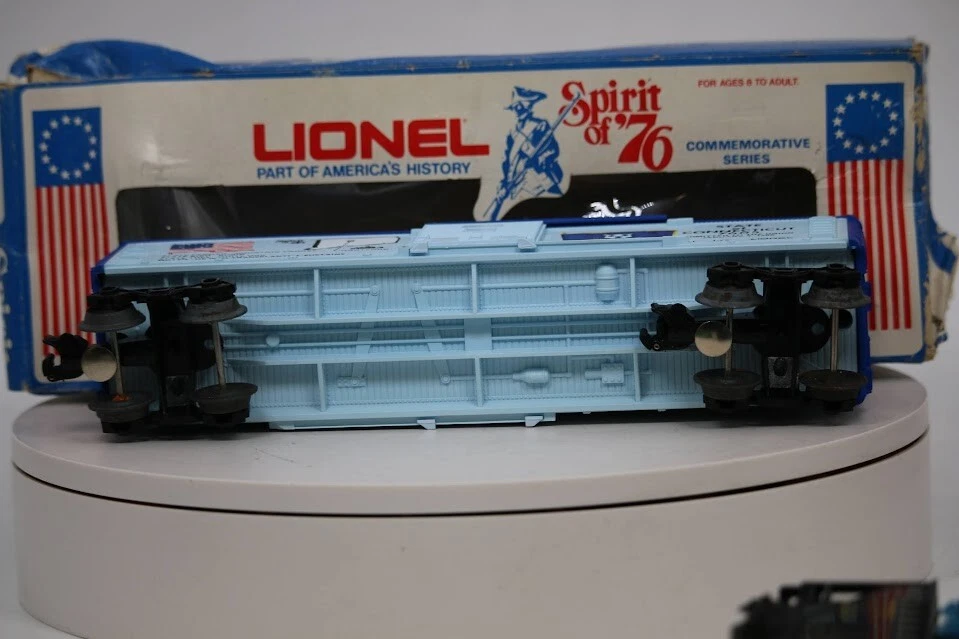 6-7605 Lionel Spirt of 76 Connecticut Boxcar with Box Look closely at the pictures to see further details. IMPORTANT: Review Photos Carefully Before Purchasing! If you're buying multiple items, please request a combined shipping invoice from us before completing payment. eBay’s automatic shipping calculator may overestimate shipping costs for combined orders. Accurate Item Descriptions & Photos: We take great care to accurately describe and photograph all train items, including HO, O, Standard, and other gauges, using optimal lighting to showcase details. However, please note that lighting conditions may cause slight variations in color when viewed at home. If you have specific concerns, feel free to request additional photos in natural lighting or ask for a more detailed description before purchasing. Key Information for Buyers: Review Photos and Descriptions: We provide detailed descriptions and high-quality photos for each item, including any vintage or collectible train pieces, so you can make an informed decision before purchasing. Items Sold "As-Is": Occasionally, some train items are listed "AS-IS" at a discounted price due to uncertainty about their working condition. They may be functional or may only be suitable for parts. Please purchase "AS-IS" items only if you understand this policy, as refunds will be limited to the item's price (shipping costs are non-refundable). Shipping Policy: Domestic Shipping Only (International Shipping Considered on Request): While we primarily ship within the U.S., we may consider international shipping on a case-by-case basis. Please contact us if interested. Combined Shipping: Purchase multiple train items and save on shipping! We offer combined shipping for items purchased within 48 hours. Please wait for an adjusted invoice before completing your payment. Fast Shipping: We strive to ship within 24 hours of receiving payment (Sunday through Friday, excluding holidays). Recycled Shipping Materials: We are committed to eco-friendly practices by reusing shipping materials whenever possible. Return Policy: We adhere to eBay's Money-Back Guarantee. If you're unsatisfied with your train item purchase, returns are accepted within 30 days. Review the following conditions: Damaged or Defective Items: If an item arrives damaged or defective (unless listed "AS-IS"), you will receive a full refund after the item is returned. Returns for Non-Defective Items: If you change your mind or ordered the wrong item, we will refund the purchase price (minus shipping costs), provided the item is returned in its original condition. "AS-IS" Returns: Items listed "AS-IS" are non-refundable for reasons other than damage or defect. Feedback: We value your feedback! Once you're satisfied with your purchase, please leave positive feedback. If there are any issues, contact us before leaving neutral or negative feedback so we can resolve the matter. By shopping with us, you'll find quality HO, O, Standard, and other gauge train items to complete your collection or layout!