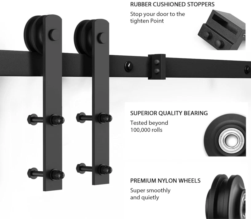 6.8 FT Heavy Duty Sturdy Sliding Barn Door Hardware Kit, Fit 36"-40" Wide Door Heavy Duty Barn Door Hardware Kit: Barn door track is made of high quality Aluminium alloy material, is more sturdy and durable. The nylon roller has undergone 100,000 tests and slides smoothly and quietly.(DOOR NOT INCLUDED.) Package Included: A Barn Door Hardware Kit (5PCS Rails, 6x Rail Spacer, 2x Roller, 2x Door Stop, 2x End Cap, 1x Floor Guide, 1x Hex Key; 1x Door Handl; all other necessary hardware is included as you see in the pictures. For 16 inch stud.)(DOOR NOT INCLUDED.) [Door Weight Capacity]: the barn door hardware track Weight Capacity is150lb-220lb, Fit door panel width: 36"- 40", Door panel thickness: 1 3/8" and 1 3/4". It can be paired with wood barn door, glass barn door, MDF barn doors, and more. Easy to Install: Professional instruction and customer service team help you solve all installation problems in time. Save the cost of finding a carpenter or decoration team. Right Choice for Your House: This modern twist on the classic barn door not only saves space, it allows the ability to open up multiple rooms without the annoyance. Suitable for living rooms, kitchens, bedrooms, storage rooms, bathrooms, and study rooms. SMARTSTANDARD 6.8 FT Heavy Duty Sturdy Sliding Barn Door Hardware Kit, Black, (Whole Set Includes 1x Pull Handle Set & 1x Floor Guide) Fit 36"-40" Wide Door Panel (I Shape Hanger) Terms of Sale and Feedback: Feedback is extremely important to us and eBay If you are satisfied with our transaction, please take a moment to leave Positive Feedback. YOUR Satisfaction is our #1 Priority! If there are any issues, PLEASE contact us BEFORE leaving a neutral or negative rating so that we may resolve any concerns. We PROMISE we can make you happy if you give us a fair chance.