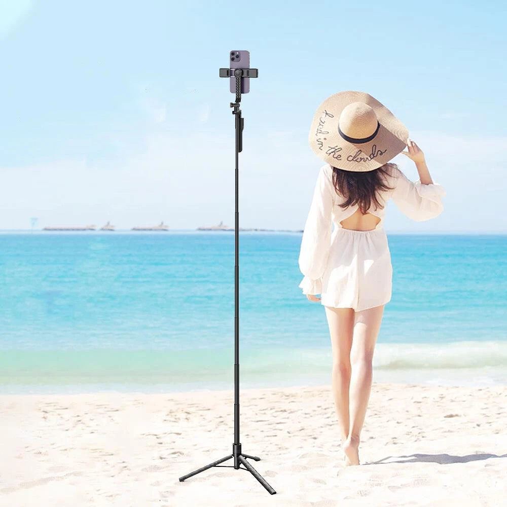 About this item 【With Phone Holder】The phone holder of the tripod can be rotated freely 360°, you can quickly rotate horizontally or vertically to shoot without taking off your phone. The size of the phone holder can be adjusted to a range of 2.56''~3.94''(6.5-10cm), suitable for 4-7 inch iOS&Android phones. Compatible with iPhone 14 Pro max/ iPhone 14 Pro/ iPhone 14/iPhone 13/13 Pro Max, iPhone 12/12 Pro/12 Pro Max, Samsung Galaxy S10/S9/S8, Huawei P40/P30/Mate 40/Mate 30, and more. 【with 1/4 screw】It is suitable for Optical Camera, digital camera, ring light, fill light, Small Photography Lights, zoom lights, phone, camera, webcam, Use with video lighting and photography accessories or as a webcam tripod for video conferencing, also works great as a tripod for light for YouTube or TikTok videos. 【Super Safe】Height Adjustable Extended from 32.5cm/12.8 inches to 175cm/ 68.9 inches, the height can be flexibly adjusted to fully meet the needs of various shooting heights. The tripod base is designed with an umbrella-shaped skeleton structure, which strengthens the load-bearing capacity and anti-slip ability. which the non-slip rubber feet can provide a firm grip and strong friction to make the tripod more stable, anti-twist and anti-shake. 【Durable & Portable】The tripod is made of aluminum alloy and ABS plastic, high quality and durable, sturdy and anti-corrosion. The minimum length of the tripod is only 32.5cm/12.8 inches, which you can easily fit it in a chest bag or handbag. This phone tripod with remote only weighs 0.66 lbs, this portable tripod is the perfect choice for outdooactivities such as traveling, hiking or camping. 【10M Wireless Remote】 Liberate your hands and enjoy taking pictures remotely with our selfie stick tripod with remote. It will keep stable up to 33ft/10m and is compatible with most smartphones such as Android and iPhone. SPECIFICATION: Material: Aluminum Alloy Battery Type: 110mAh CR1632 Stretchable Length: 175cm/ 68.9 inches, Fold Length: 32.5cm/12.8 inches Bluetooth Compatibility: iOS 5.1, Android 5.0 and above Work Mode: Phone Tripod Stand & Selfie Stick Maximum Load: 1KG Remote Control: 33ft Item Weight : 380g Package : 1 x Selfie Stick with Phone Holder 1 x Remote 1 x User Manual