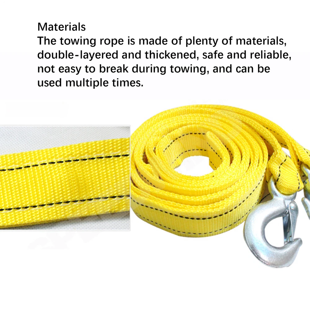 6-8Tons Tow Strap with 2 Hooks Vehicle Heavy Duty Recovery Rope For EmergencyCar Product Description Bullet Points: Reliable Material: This tow strap is constructed with ironclad strength and toughness. The high-strength polyester undergoes a multi-process cycle, including high-temp baking and ironing, to become incredibly sturdy and long-lasting. Power-Packed Performance: With a 4cm width, our unique tow rope can tow vehicles up to 4 tons. Crafted with high-quality material & visible yellow color, this heavy duty strap ensures maximum safety & easy usage for urgency situations. Safe Towing: Our tow strap ensures safe towing by providing a standard length of 4.5 meters, keeping a safe distance to prevent collisions between towing vehicles. Convenient to Install: Including 2 quick release metal hooks made of high strength alloy, this tow strap ensures easy and secure installation and removal for your peace of mind. Versatile in Use: Our tow strap made of sturdy polyester is ideal for a wide range of vehicles, including cars, SUVs, pickup trucks, motorcycles, SUVs, and minivans. Count on its reliability and safety for vehicle recovery or towing purposes. Our high-quality and 4cm width car tow strap is designed to prevent collisions between towing vehicles. With hooks included, it's perfect for cars, SUVs, pickup trucks, motorcycles, and minivans. Specification: Name: Double-width and thickened trailer rope Material: high strength polypropylene + steel Length: 4.5m Strength: 6-8 tons Pack List: Tow strap*1 Storage bag*1 Payment 1.PayPal is a preferred Payment method. 2.You can make a Credit payment via Paypal.Paypal will let you use MasterCard,Visa to pay. 3.Payment should be completed within 3 days after auction closed, or unpaid dispute will be filed for an closing auction.An unpaid case will be filled after 4 days. Delivery details 1. We ship to many countries. 2. Delivery Time: Ship from China via Speedpak to US (takes 8-12 days) Ship from China via others shipping method to other countries (takes 15-60 days) 3. If you want to choose another address, please leave us a message on ebay.Please check your shipping address carefully before checkout,it can't be changed if order completed. Seriously promise:Refund or resend will be offered if item still not arrive in 7-10 business days. Just send us an email,we will give you a satisfied solution as soon as possible. Return policy 1.All item comes with Basic 3 Months Sellers Warranty, if item defective in 3 months,We will offer replacement without extra charger (including shipping fee) After we receive the defective item. If item Defective after 3 Month, Buyers can still send it back, We will contact suppliers or Manufactory for Warranty. Buyers Might Need pay the Shipping fee For resend the replaced item. 2.If item DOA(Dead of Arrival), Buyers can return it in 30 Days, we will replace it with new item after we receive DOA item. Please Contact us Before you sent the item back. 3.All item can be returned for exchange only. The buyer has responsibility for all return shipping including DOA or defective return. About Feedback When you receive the item and satisfied with the product, please leave positive feedback and 5 scores DSR. We will leave a 5 Scores DSR feedback for you. If, for any reason you are not satisfied with your purchase, please contact via Ebay Message and we will do our best to resolve it. Please don't leave neutral or negative feedback without any communition with .