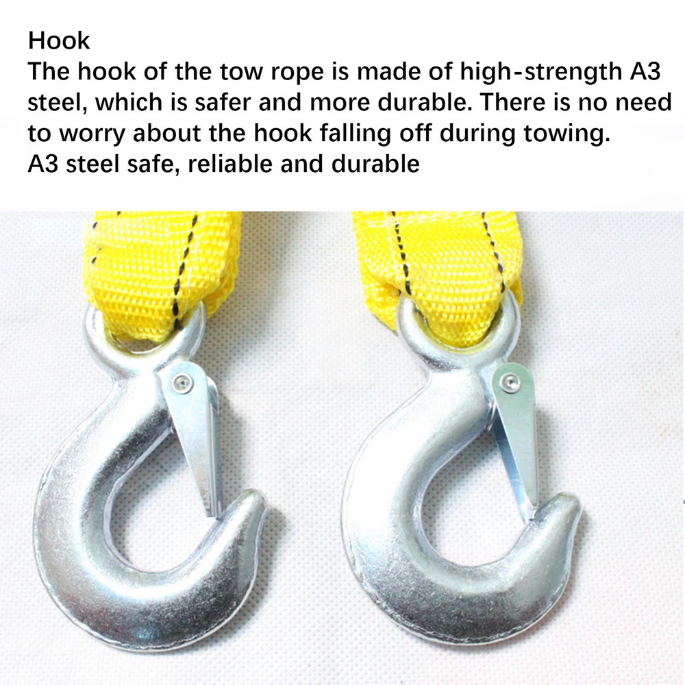 This tow strap is a lifesaver in emergencies—super strong polyester, heat-treated for durability, and eye-catching yellow for visibility. The reinforced hooks handle up to 8 tons, making it perfect for heavy-duty towing. Super reliable and built to last!
