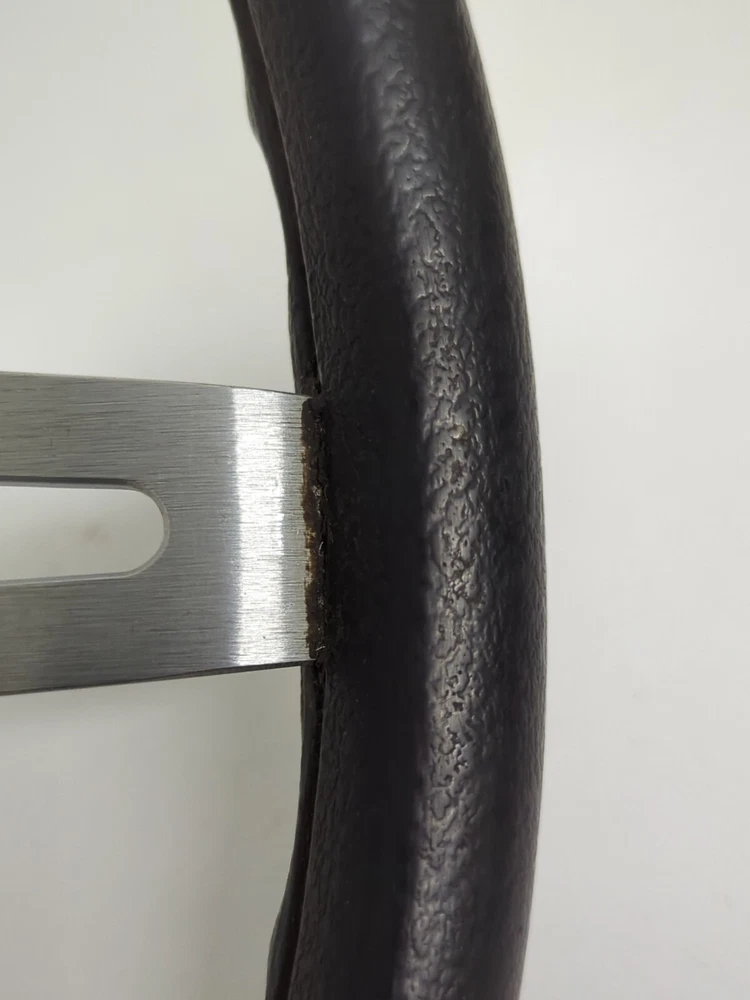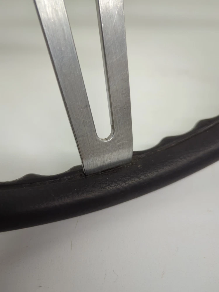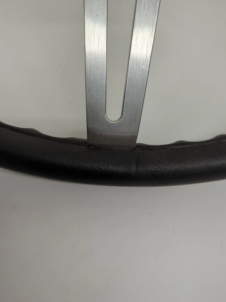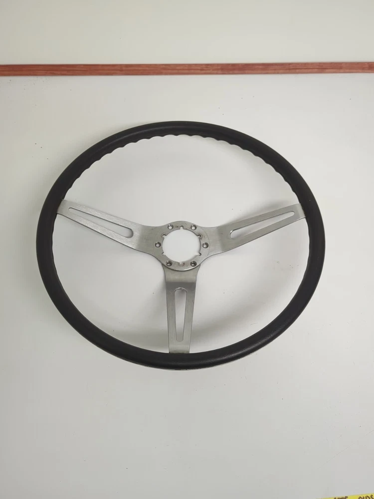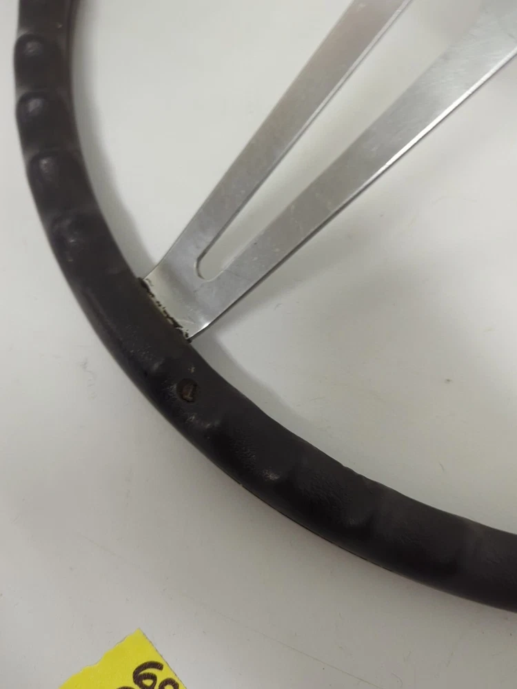 Original used GM comfort grip steering wheel. Black in color, 15" diameter, 2-3/4" deep. In great condition. Not sticky, has a few minor nicks on the rim (see pics) nothing serious. Wheel is not bent at all. No delamination where the cushion meets the spokes.No significant scratches on the spokes. Not perfect but a very nice wheel
