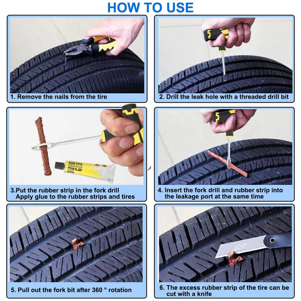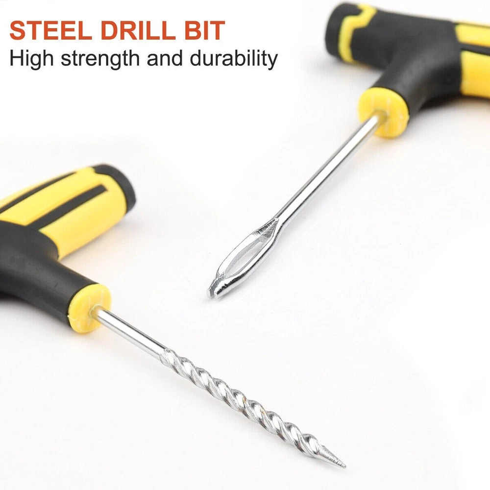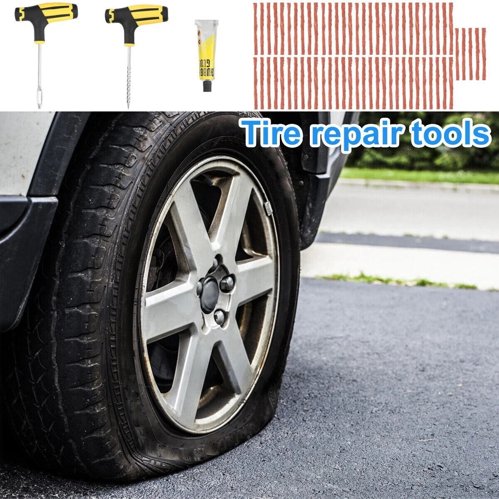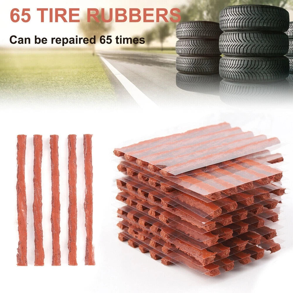 68pc Tire Repair Kit DIY Flat Tire Repair Car Truck Motorcycle Home Plug Patch Item Description 68PCS Tyre Repair Kits Material: ABS+Steel+ Vulcanized Rubber Color: Brown+Yellow+Black Size: As Picture Show Package Include: 1X Rasper Tool 1X Needle Reamer Tool 1X Rubber Solution 65X Tyre Bar Features: 1. With high-level upgrade glue bar - the heavy brown glue bar (65pcs) can provide excellent security sealing. It is stronger and better than the cheap string in the budget kit. Every aspect of our tire plug kit is designed very strongly. 2. It adopts a universal flat tire repair kit - cars, motorcycles, ATV, tractors, grass cutters, RVs, off-road bicycles, trailers, SUVs, trucks and spare tire repair kits. With 65 Superior Brown tire plugs, make it the best sub -tire repair kit. 3. The product adopts high- quality professional tools- our tire burst maintenance kit includes a pair of strong high-quality tools. This is a major upgrade of the cheap tools in other tire plug repair packs. 4. With T-shaped handle tools that conform to ergonomic design-tools suitable for this job can easily repair the perforation of internal tireless tires in a few minutes. Our portable tire repair kit includes a color description that is easy to understand and easy to follow.