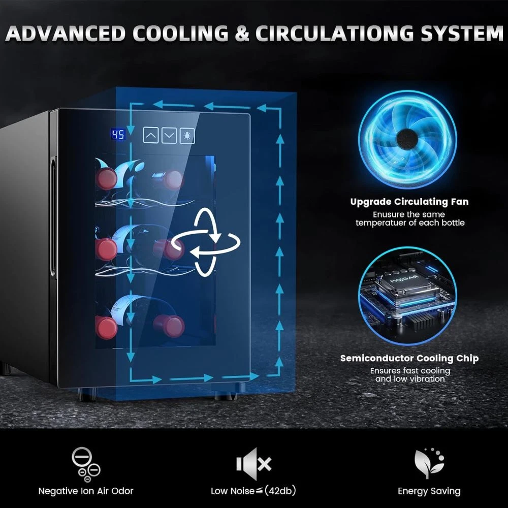 Description DETAILS REMOVABLE RACKS This wine cellar features two wire racks that can be removed to fit various wine bottle shapes and sizes. DIGITAL CONTROLS Touch screen controls let you adjust the temperature without opening the door. SILICONE SEAL Thicker sealing strips to better isolate the external air and maintain the internal storage environment. ADJUSTABLE FEET Adjustable feet allow the wine celler to be placed on uneven floors for your convenience. 6-bottle capacity LED-display Smart temperature controls with Fahrenheit and Celsius options Soft blue LED interior lighting that showcases your bottles without damaging the wine Spacious interior with a space-saving exterior design at 14 x 9.8 x 20 inches . Ideal temperature for red wine; fits most wine bottles (excluding champagne bottles) Specs: Input – 12V/2.5A; Power – 30W; Capacity – 16L/6 wine bottles; Temperature Range 46-64°F (8-18°C) Refrigeration method : Semiconductor air-cooled Open the door : Single door Temperature range : 8-18℃ / 46 - 64°F Beverage / wine : Red wine Temperature zone: single temperature zone Handle / material : Do not apply Shelf Material : Metal shelf Color : Black (Door frame plastic) With lock: No Light color : Blue Door Material: Double toughened transparent glass Shipping Payment Returns Contact Us Item will be shipped from our USA warehouse which located in California / New Jersey / Illinois / Georgia by UPS / Fedex / USPS within 1-3 business days. Domestic orders usually takes 1-5 days to arrive. Please make sure your address is the right address in eBay before payment. All Friday orders will be shipped on next Monday morning. We accept credit cards, debit cards, Apple Pay, Google Pay, PayPal and other payment methods. All major credit cards are accepted through PayPal, a secure payment processor.Payment is due within 4 days after the auction ends. Otherwise a dispute of non-payment will be filed and the auction will be closed. 60 days Money-Back Guarantee. You can return the UNUSED item back to us for a full refund. Please contact us for return process before you return the item. If we sent wrong item, we will pay for return shipping fee. If buyer ordered wrong item, buyer pays return shipping fee. Email Customer Support: 9:00am-2:00am PST Sunday-Friday All emails will be responded to within 12-24hours If you have any problem, please feel free to contact us, we will try our best to solve the problems for you.