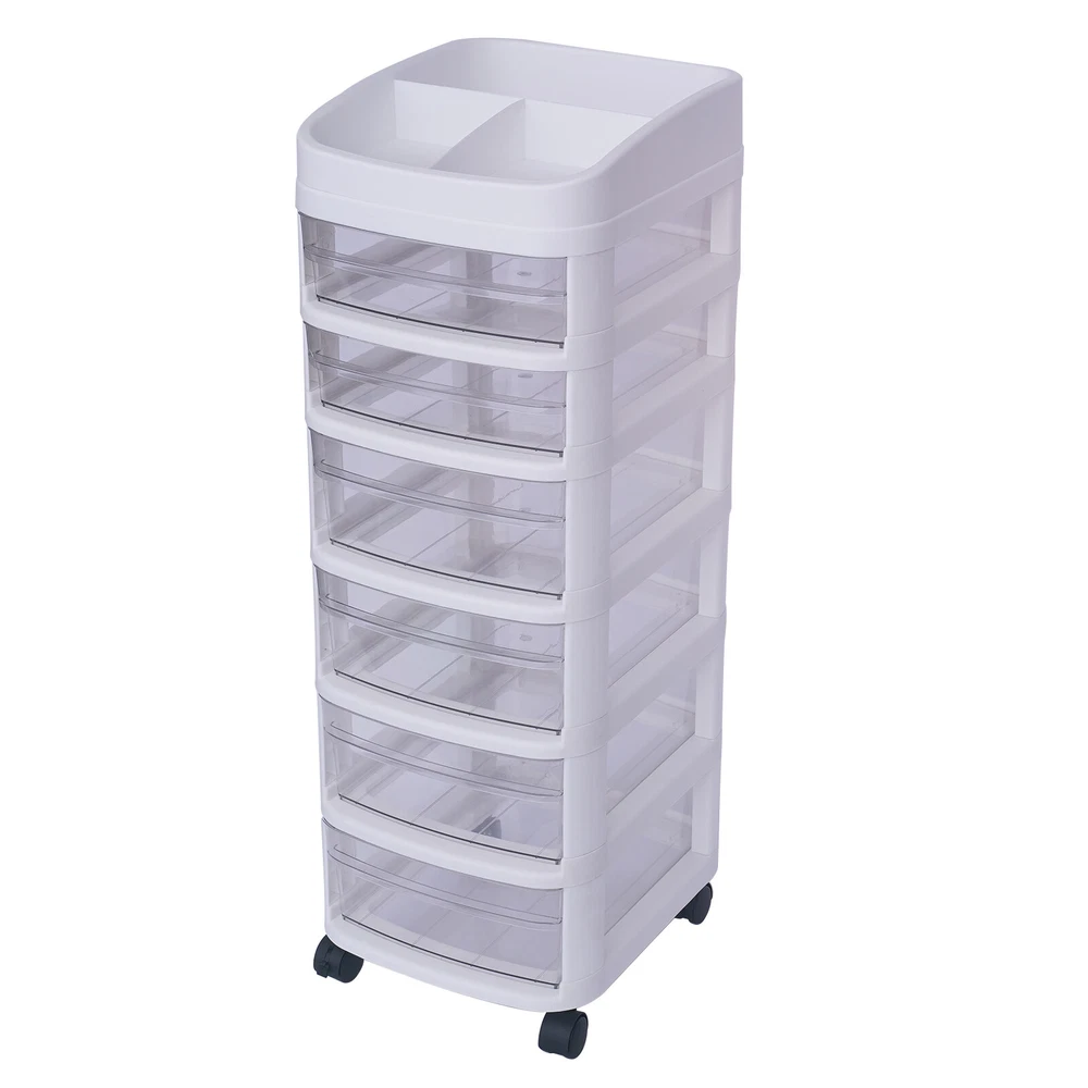 6-Drawer Organizer Plastic Rolling Storage Cart Whit Trolley Cabinet w/ Wheel]