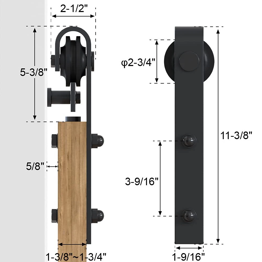 Sturdy and durty barn door hardware: The side-mounted sliding barn door kit is made of high-quality carbon steel, that can ensure durability and studity to support barn door weight up to 277 lbs. The surface of barn door track is adhered to a fine black powder coating by high temperature to ensure that it can be used for a long time. How to choose the Double barn door hardware kit: The sliding door track length should be at least double the door width. And there should be a minimum of 5.1" gap between the barn door and the ceiling.Fit door panel width: 32", door panel thickness: 1 3/8" - 1 3/4". It can be paired with wood barn door, closet door, MDF barn doors, and more.(If you have thicker door, contact us and longer pipe clamp screws can be supplied) Quiet and smooth sliding door hardware: The high-quality carbon steel track kit ensures barn door slide smoothly. J-Shape barn door rollers can provide smoother rolling. With carbon steel anti-hopping block and stopper for stable movement and long useing. Easy to install: The barn door hardware kit package include:(1) 2 X 3FT Tracks (5) Wall Connectors (4) Rollers (4) Door Stoppers (2) Floor Guide (1) Installation manual; All necessary hardware is included. And we can provide installation video to make you easier when install the barn door kit.This sliding door hardware takes up to 2 people to install in 40 minutes. If you have any issues, please let us know, and we will do our best to assist you.(DOOR NOT INCLUDED) Versatile sliding barn door hardware: The black barn door track provides a sleek, modern look that can complement various interior design styles, from rustic to industrial, including residential homes, offices, and commercial spaces. Barn door hardware kit allow doors to slide parallel to the wall, saving valuable floor space compared to traditional swinging doors. This makes them ideal for smaller rooms or areas with limited space.