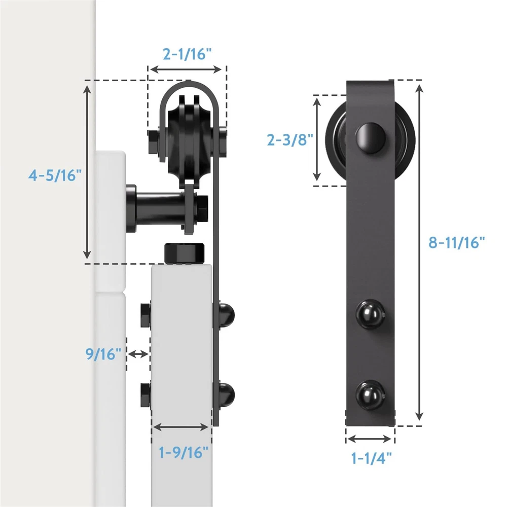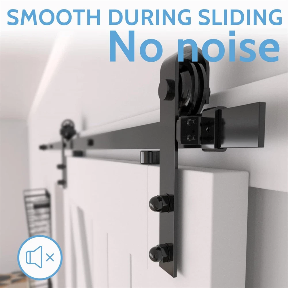 Basic Info: Barn door hardware kit maximum hold barn door for 265 lbs, Fit for door panel thickness from 1.375" to 1.75", Fit for door panel width up to 36"(door not included). Strong and Durable: Barn door track are made of high standard carbon steel with black coating, This greatly increases the robustness of the barn door track and makes it water, dust and rust resistant, all attributes that allow the entire barn door hardware kit to maintain long-term stable operation. Smooth and Quiet: Sliding door kit is based on the POM made wheels(2 bearings inside wheel), which allows the barn door system to slide more silky smoothly and quietly and does not easily cause wear and tear on the track. Less Space Ocuupy: Compared with normal sliding doors, barn doors and hardware included are more space-saving, the space behind your door is not bound, you can easily stack items behind the door, it is your space becomes more neat, this is the biggest reason why we choose barn door system. What Included: 5* barn door track(combine to 6ft), 2* barn door rollers, 2* door stoppers, 2* anti-jump pads, 1* floor guide, 1* maunal. Incase you get any confusion on installation or missing parts ,kindly us via ,we may get back to you in 24 hours. "ONLY BARN DOOR HARDWARE KIT FOR SALE, BARN DOORS ARE NOT FOR SALE."
