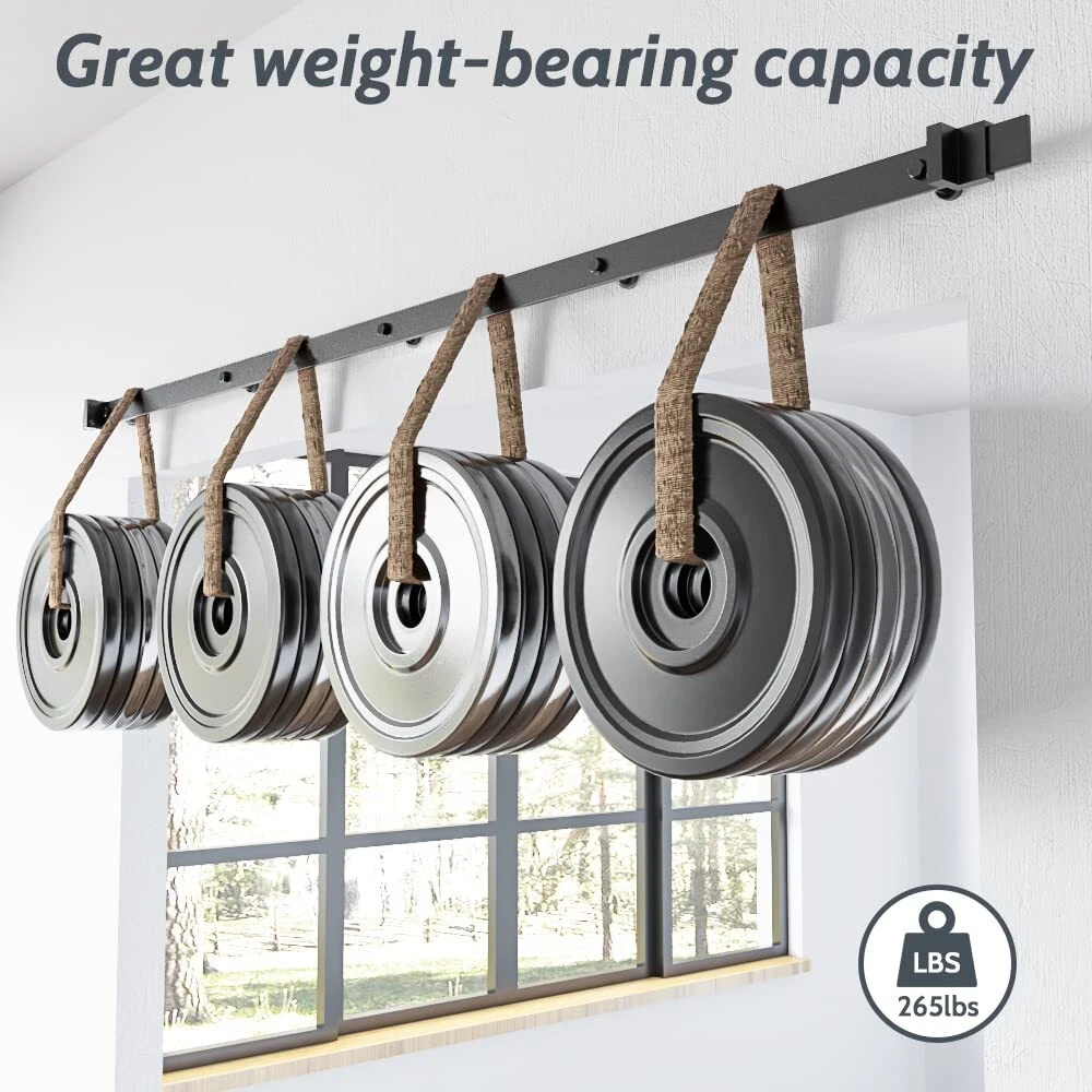 6FT Barn Door Hardware Kit [HIGH STANDRAD MATERIAL]Barn door rail,Barn door roller arm are made of carbon steel in 1/4" thickness,Great performance on hanging doors. Barn door wheels are POM made,More sturdy than steel,Smooth and Quiet during sliding , protect both of track and roller ,ensure the barn door system will last long. [STEP BY STEP INSTALLATION]"IMPORTANT:ONLY BARN DOOR HARDWARE KIT INCLUED,BARN DOORS ARE NOT FOR SALE". Manual included,just follow it from step A to Z.Normally it take 30-60 mins to install the whole system based on different installation conditions.In case you find you are missing parts after received the package or you have more doubt on installation ,kindly contact us for the missing part or your questions ,we will get back to you in 24 hours. [BARN DOOR HARDWARE KIT ]Color:Matt Black(black powder coated),Condition Type:New; Main Material: Carbon Steel,Door weight capacity: 250 lbs; Fit for maximum panel width: 36"; Bolt for barn door roller fit for door thickness from 1-3/8" to 1-3/4";Need at least 6" clearance from top of barn door to ceiling.the barn door track hole spacing is 16" pre-drilled. [PACKAGE CONTENT] 5 x barn door track, 5 x wall spacers with leg screws, 2 x barn door stoppers, 2 x barn door rollers, 2 x anti jump pads, 1 x barn door floor guide, 1 x instruction [WHY US] We are a leading manufactory of barn door hardware for more than 10 years ,all sets barn door hardware track kit have been inspected before leaving our warehouse,barn door rollers have been tested over 1000,000 times opening and closing cycle .You can get heavy duty barn door kit here with a manufacturer price,why not ? In case you got any confustion during shipping ,kindly feel free to submit a question or contact us via amazon directly ,thank you .