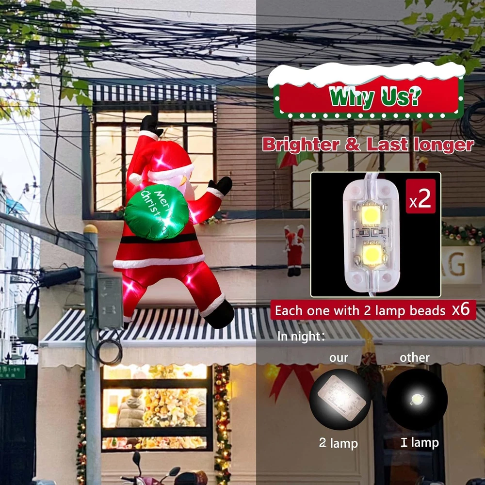 Store New Arrivals Add to Favorite View Feedback Contact Fast deliveries to the customer's home Quality customer service John Make the customers happy! 6FT Christmas Inflatables Outdoor Decorations Joy Hanging Santa Claus Gift Bag, Very Bright LED Lights Blow up Giant Christmas Decor for Indoor Yard outside Fall Vacation Holiday Party Lawn Description Hassle-free Setup: This Christmas inflatable decoration includes 7 ropes for ensure stability. Its quiet, waterproof blower inflates the Santa Claus in minutes automatically when connected to power. The extended power cord allows for flexible positioning around your home, offering a user-friendly experience. Longer Lifespan: TwoBees outdoor Christmas decorations is composed of durable waterproof polyester that can resists tears and fading. With superior stitching to prevent leaks, ensuring it to easily last through the chilly Christmas season, becoming a long-term holiday companion for your family. Unique Design: At 6ft tall, this well-crafted Christmas blow up decorations is a yard showstopper. Its 6 embedded LED lights eliminate darkness, making it a star attraction on Christmas night. This captivating display will make your yard uniquely appealing among your neighbors! Versatile Holiday Decor: Ideal for both indoor and outdoor Christmas decorations, our hanging Santa Claus decorations enhances the Christmas spirit in yards, store, coffee shop, home and any indoor settings. It's perfect for Christmas events, party event, New Year celebrations, or even as a thoughtful gift. Create lasting holiday memories with this delightful decoration. Safe & Superior Quality: Each product holds UL Certification and is triple-checked before delivery. This ensures our outdoor holiday decorations remains safe and performs well outdoors, even in bad weather. If you have any questions, please feel free to contact us. Product Description TwoBees Christmas Self inflatables decorations for Indoor & Outdoor Don't hesitate to place these Christmas decorations in the front of your home or store—they will catch people's eyes as they drive by day and night. It's also perfect for photos and sharing, let the joy of Christmas fill your life!! As Christmas nears, these delightful inflatable decorations will bring a festive atmosphere to your home! With this well-designed huge inflatable Santa Claus, your yard will impress your neighbors, and bringing joy and happiness to your kids. Perfect for an outdoor display in your store, cafe, front yard, porch, or as decor inside your home. Great for store decorations for wall, Christmas decorations indoor, Christmas decorations outdoor yard, Christmas party decorations, Christmas vacation decorations, holiday season decorations, etc. Get ready to have the most festive house on the block with Christmas inflatables! Santa, Snowman, and Xmas Tree are essential decorations. It's time to choose a Christmas theme for your yard and bring it to life! Big Enough This well-designed 6 FT Christmas inflatable decoration is large enough to be seen from far away. Tips: This Christmas decorations for home yard must be connected to the power supply. Prevent the blower from falling from a height and experiencing heavy impact. Zip up the bottom to avoid air leaks before inflation. Don't drag inflatable objects near sharp objects to avoid puncturing them. Do not submerge the product in water for a long time. Easy to Set Up We provide 7 ropes. 1. Zip it up and wait—it will automatically inflate when plugged into a standard electrical outlet. 2. Attach the rope to the product and secure it to the protrusion on the wall for a sturdy display. No need to worry about it flying away in the wind this Christmas. Great Gift Give a big surprise for your kids and friends to celebrate the New Year, which is going to be an happy Christmas celebration! Style 6FT Hanging Santa Item Dimensions 74.4 x 28.8 x 62.4 inches Color Hanging Santa Light Color Red, Green Material Type Polyester Theme Christmas Occasion New Year, Christmas Additional Features Easy Setup, LED Light, Long Lasting, Lighted, Foldable Subject Character Santa Claus Cartoon Character Santa Claus ABOUT US We offer the best prices around on high quality products. Our E-store includes media such as books, movies, music and games while offering electronics, toys, sporting apparel, clothing, tools, general home, garden items and more. SHIPPING We are always working hard to ensure your package arrives as soon as possible. Please understand that some factors like weather, high postal traffic, and the performance of shipping companies are outside of our control. We offer free shipping to the lower 48 states and ship within 2 business days of payment, usually sooner. We do not accept P.O. Boxes. Please provide a physical address. For shipping outside of the continental USA, we only use eBay's Global Shipping Program. The item is shipped to KY and then sent to the rest of the world. International customers are responsible for all duties and taxes. Continue to 'check out' to calculate costs for shipping the item to your country. Messages regarding eBay's Global Shipping Program MUST be directed at eBay EXCLUSIVELY. RETURNS We offer a 30-Day Return Policy on items in which you are not completely satisfied with. You have the option of a full-refund or an exchange of the item. No returns are available on items shipped outside of the USA PAYMENT We accept PayPal. CONTACT US This page content is yet to come Please ad us to your favorite seller and visit again later Thank You CUSTOMER SATISFACTION We try our very best to make sure every customer is completely satisfied. If there's a problem, message us! We're happy to help. WE ACCEPT