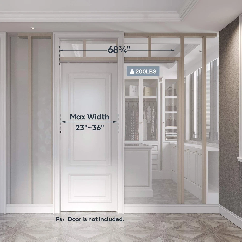 Your Best Choice: professional dedicated to the research of barn door and sliding barn door hardware for many years,we always insist on providing the best quality,the safest and the most cost-effective products. Excellent Quality: Pocket door hardware is made of high-quality aluminum material with premium nylon roller pulley,coated with silver surface,which ensure the features as corrosion,rust-resistant,durable.And maintains its beauty and longevity for many years.Roller is equipped with three wheels, which ensures good load-bearing and stability of the product. Package List: 1 x 68-3/4" track,2 x rollers,1 x bumper,1 x floor guide.All necessary parts are included.(DOOR IS NOT INCLUDED.) Product Advantage: Compared with traditional barn door hardware, top mount pocket door track is space saving and can be used in a variety of living situations, such as kitchen, study, etc. This pocket door hardware and track roller set fits door thickness from 1" to 1-3/4" and weigh up to 200 lbs. 24 Hours Stand By: The package contains all accessories and copy of step-by-step installation manual.You can also get professional support within 24 hours from our service team.