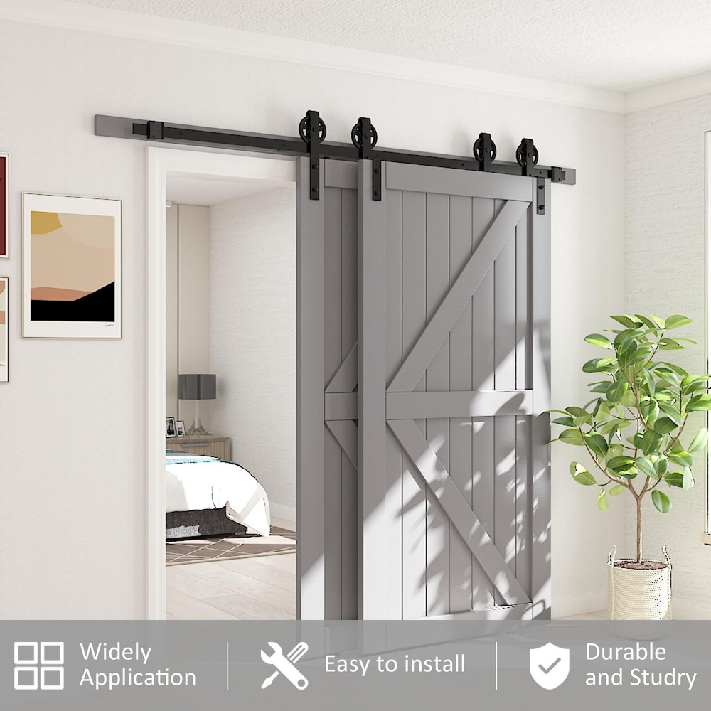 6 FT Double Door Sliding Barn Door Hardware Kit with Heavy Duty Straight Pulley Track