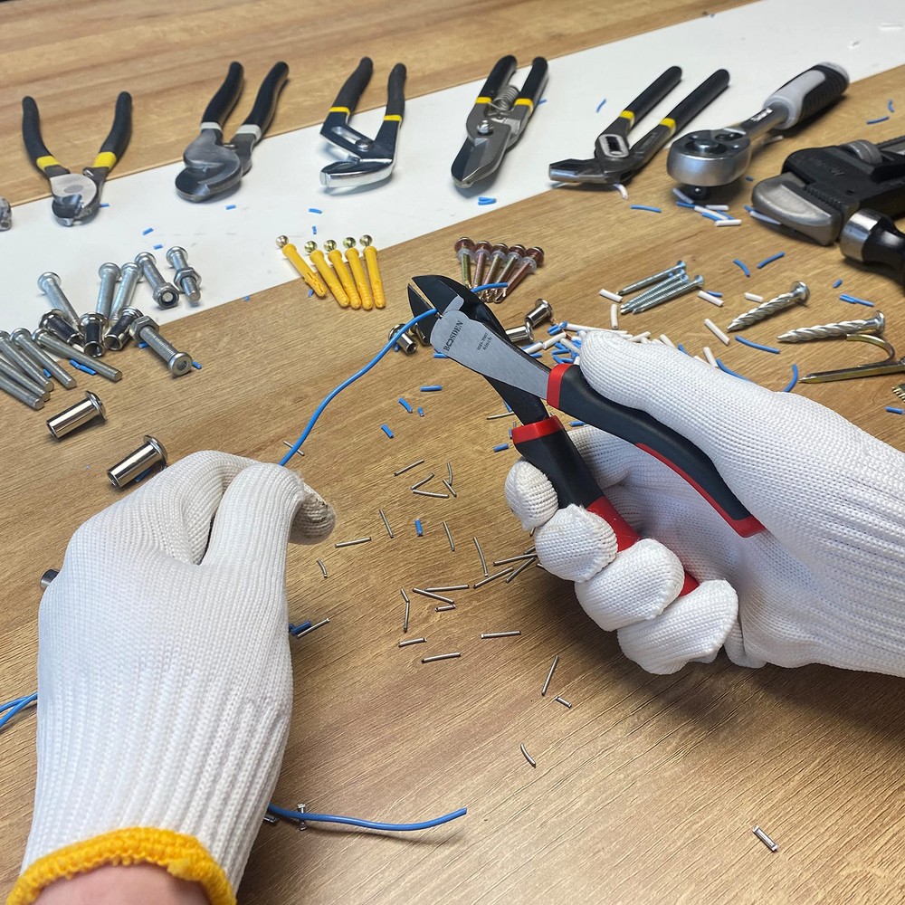 【Side Cutters Ingenious design】Heavy duty side cutting is for easy work in High-leverage design. 【Precision Wire Cutter Comprehensive function】Dikes wire cutters is -in-tool ,you can use it to cut the wires and also you can use the hole in the head of the cutters to remove the skin of the cable. 【Diagonal Cutting Pliers Durable】Heavy duty diagonal cutter Short jaws and beveled cutting edges permit close cutting of wire Induction-hardened cutting knives for long life. 【Cutting Pliers body design】The handle of the side cutters have a rubber handle, which can play a protective role and provide a comfortable grip. Hope you can improve efficiency, and spring return tools can reduce fatigue. 【Quality 】Quality of every piece LLC product provided will be guaranteed. products with material or workmanship defects will be replaced free of charge.