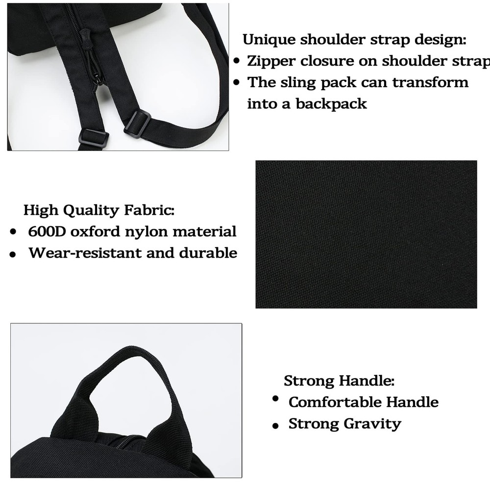 Lightweight One Strap Backpack sling backpack is ideal for everyday use, especially if you ride a bike to work. They're also well-suited to hiking and camping trips. Unisex black sling backpack bag can be used as chest bag, sling bag, travel bag, cross body backpack, shoulder backpack, casual daypack, sling pack bag,backpack. If you´d like to hike, or climb, you can carry our lightweight sling backpack. This sling bag can hold all your belongings and stuff. Construct weight :0.4kg / 0.88 lb dimensions: 11 x 8.7 x 4 inches/28*22*10cm (l x w x h). material:oxford nylon material color:Black /Tan/Green/ACU A Great Gift durable and sturdy, water-resistant black sling backpack is ideal for hiking, cycling, walking, hunting, camping, travel, work. Compact Size: size 11''H X 8.7''LX 4'' W; the max length of the adjustable shoulder strap is 37.5inches. High quality material: Made of upgraded 600D Military Nylon durable material and high quality buckles.Water-resistant and durable. Double zippers closure, padded heavy duty handle and sturdy stitching, adjustable strap.It is perfect for your daily use. 4 Ways Carrying Style: Multi-function and practical comfortable design for four ways using as shoulder bag, chest bag, back side backpack and hand carry bag. Zipper closure on shoulder strap,The sling pack can transform into a backpack. MOLLE SYSTEM: The tactical sling bag is equipped with an external MOLLE system, you can easily load other devices according to your requirements,such as;Sunglasses,flashlight,Carabiner,Keychains, GPS devices, digital cameras, medical supplies, small tools.Suitable for hiking, fishing, hiking, tourism, horse riding, running, cycling, walking, camping, mountaineering, cycling and other sports activities. Suit for Any Occasions: Great for both indoor and outdoor use including hiking, hunting, fishing, camping, motorcycling, biking, small gear bag, small tool Bag, range bag etc. You can take it as small everyday carry diaper bag, small military rover shoulder side backpack, small snacks bag, small tool bag.