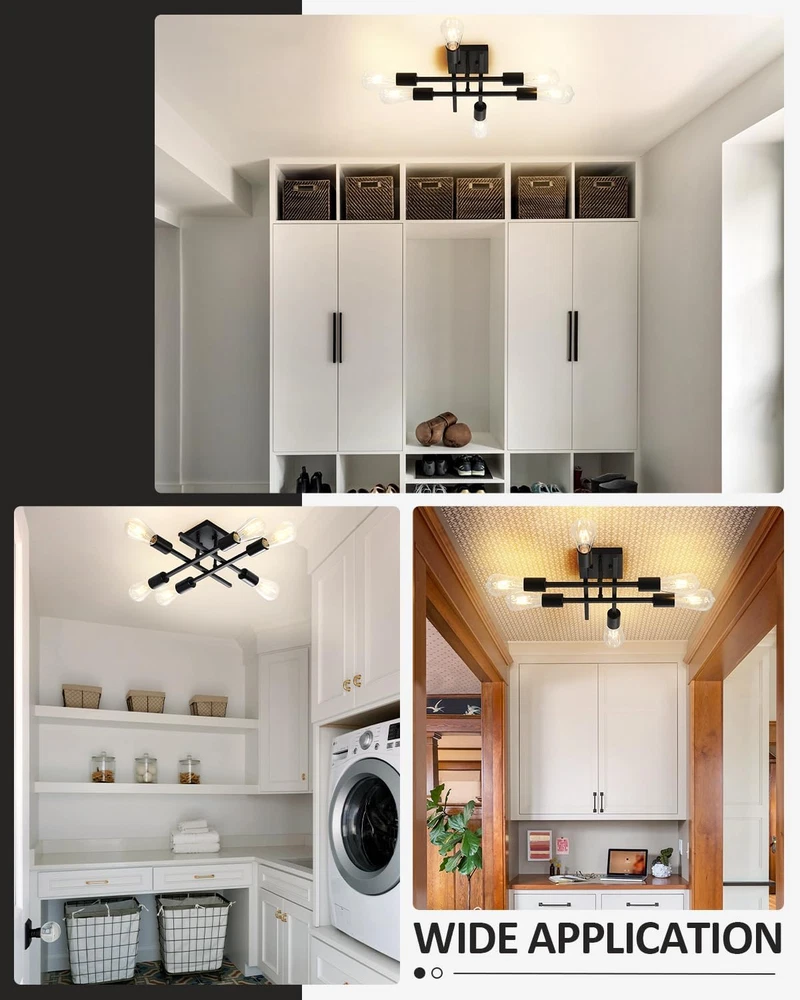 Store New Arrivals Add to Favorite View Feedback Contact 6-Light Semi Flush Mount Ceiling Light Fixture, Modern Black Sputnik Chandelier Lighting, Farmhouse E26 Stock Ceiling Lamp Kitchen Bedroom Living Room Entryway, Bulbs Not Included Description Item model number EICL002-BL1P Light Source Type LED Style Farmhouse Number of Items 1 Power Source Corded Electric Number of Light Sources 6 Control Method App Warranty Type 1 year limited warranty Lighting Method Adjustable Finish Types Painted Country of Origin China Controller Type Push Button Unit Count 1.0 Count Room Type Bedroom, Dining Room, Living Room, Study Room, Bathroom, Laundry Room, Entrances, Hallway, Entryway Switch Type Push Button Product Dimensions 1 x 1 x 1 inches; 2.84 Pounds Material Metal Model Number EICL002-BL1P Installation Type Semi Flush Mount Additional Features E26 Medium Base, 120VAC, Maximum Wattage-60W/Light, Bulbs Not Included Specific Uses For Product Cabinet Fixture Type Non Removable Material Type Metal Light Color Black Item Weight 1.29 Kilograms Light Fixture Form Close to Ceiling Light fixture form Close to Ceiling Bulb Base E26 Item Dimensions L x W x H 1"L x 1"W x 1"H Shade Color Black Mounting Type Ceiling Mount Color Black Indoor Outdoor Usage Indoor Voltage 120 Volts Shade Material Metal Included Components Mounting Hardware Style Name Farmhouse Size 1 Count (Pack of 1) Farmhouse Ceiling Mount Light Fixture: Designed with a classic black finish metal, this black close-to-ceiling lighting with an elegant and modern looking. Perfect for your home lighting and decoration Recommended Bulbs: Our semi-flush mount lamp with standard USA sockets, this sputnik ceiling lighting fixture requires 6 x E26 base bulbs (Max 60W). Compatible with LED bulbs, Incandescent or CFL bulbs. Easy to install, just screw the E26 bulbs you desired into the ceiling mount. If dimming is required, please use dimmable bulbs and compatible dimmer switches Wide Application: This light fixture ceiling mount combines modern and industrial styles. Perfect for bedroom, dining room, living room, study room, bathroom, laundry room, entrances, hallway, entryway, stairwells, balcony, porch, etc, also ideal for commercial areas: bars, cafes, offices, hotels and restaurants High-quality Metal: Crafted from high-quality metal, which makes this industrial chandelier pendant lighting is anti-rust, anti-corrosion and anti-faded. The retro stylish of the ceiling lamp is suitable for the middle ages, modern, farmhouse, country different decoration styles Easy Installation: This modern indoor flush mount ceiling lamp comes with all hardware. Just take a few minutes you can finish the installation Product Description Modern 6-Light Semi Flush Mount Ceiling Light Fixture- Suited for Any Decoration Style! Farmhouse Black Sputnik Chandelier Lighting Industrial E26 Stock Close-to-ceiling Lamp ABOUT US We offer the best prices around on high quality products. Our E-store includes media such as books, movies, music and games while offering electronics, toys, sporting apparel, clothing, tools, general home, garden items and more. SHIPPING We are always working hard to ensure your package arrives as soon as possible. Please understand that some factors like weather, high postal traffic, and the performance of shipping companies are outside of our control. We offer free shipping to the lower 48 states and ship within 2 business days of payment, usually sooner. We do not accept P.O. Boxes. Please provide a physical address. For shipping outside of the continental USA, we only use eBay's Global Shipping Program.The item is shipped to KY and then sent to the rest of the world. International customers are responsible for all duties and taxes. Continue to check out in order to calculate costs for shipping the item to your country. Messages regarding eBay's Global Shipping Program MUST be directed at eBay EXCLUSIVELY. RETURNS We offer a 30-Day Return Policy on items which you are not completely satisfied with. You have the option for a full-refund or an exchange of the item. No returns are available on items shipped outside of the USA. PAYMENT We accept PayPal. CONTACT US This page content is yet to come Please ad us to your favorite seller and visit again later Thank You CUSTOMER SATISFACTION We try our very best to make sure every customer is completely satisfied. If there's a problem, message us! We're happy to help. WE ACCEPT Copyright © 2021 AutoDS. | All Rights Reserved