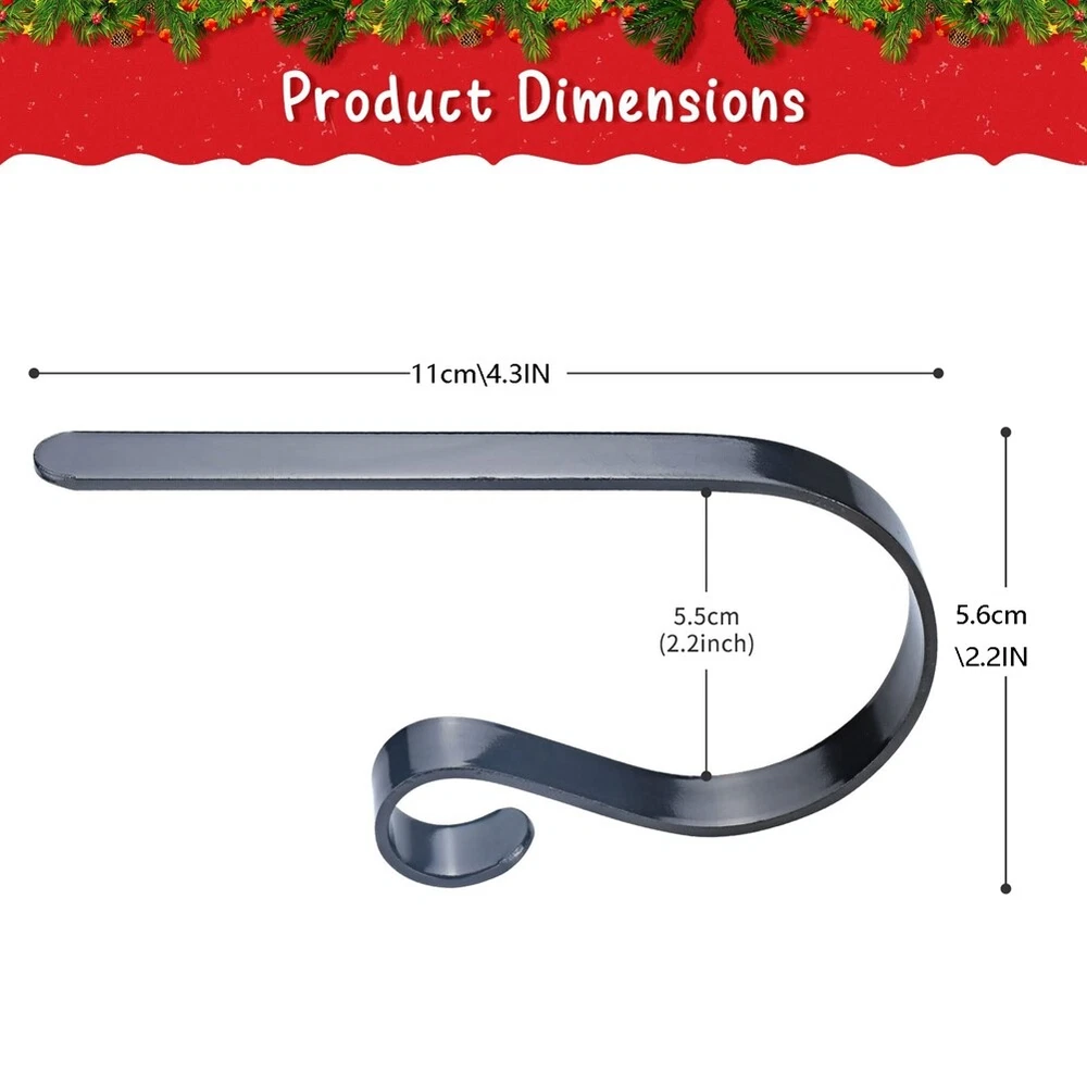 6PCS Christmas Stocking Holders for Set of 6 Mantel Decor Hooks1836 Material:High Quality metal spraying treatment,not easy to rust and corrode. Size: The stocking hangers are 11x5.6cm(L x H).This Christmas hanger is suitable for mantels or fireplaces whose thickness is less than 2.2 inches. Non-slip: Equipped with transparent double-sided tape,which can be firmly fixed on the of the mantel. Wide range of uses: These hook hangers are practical yet ornamental,very suitable for Christmas and home using.Widely used in kitchens, bathrooms,workshops,gardens,garages and other places.Add some festive atmosphere to your event. Colour:Black Material:Metal Package Contents: 6 x Christmas Stocking Holders