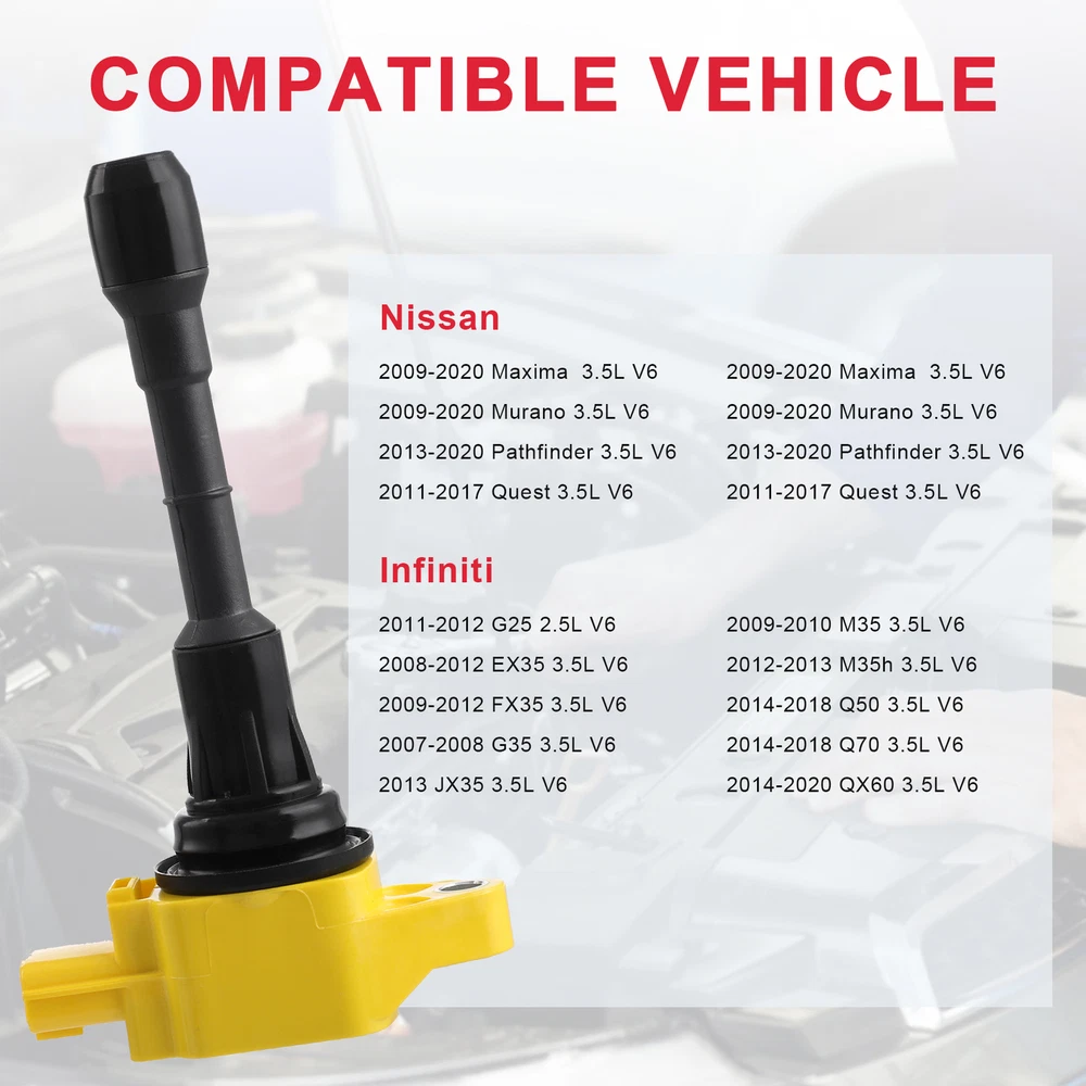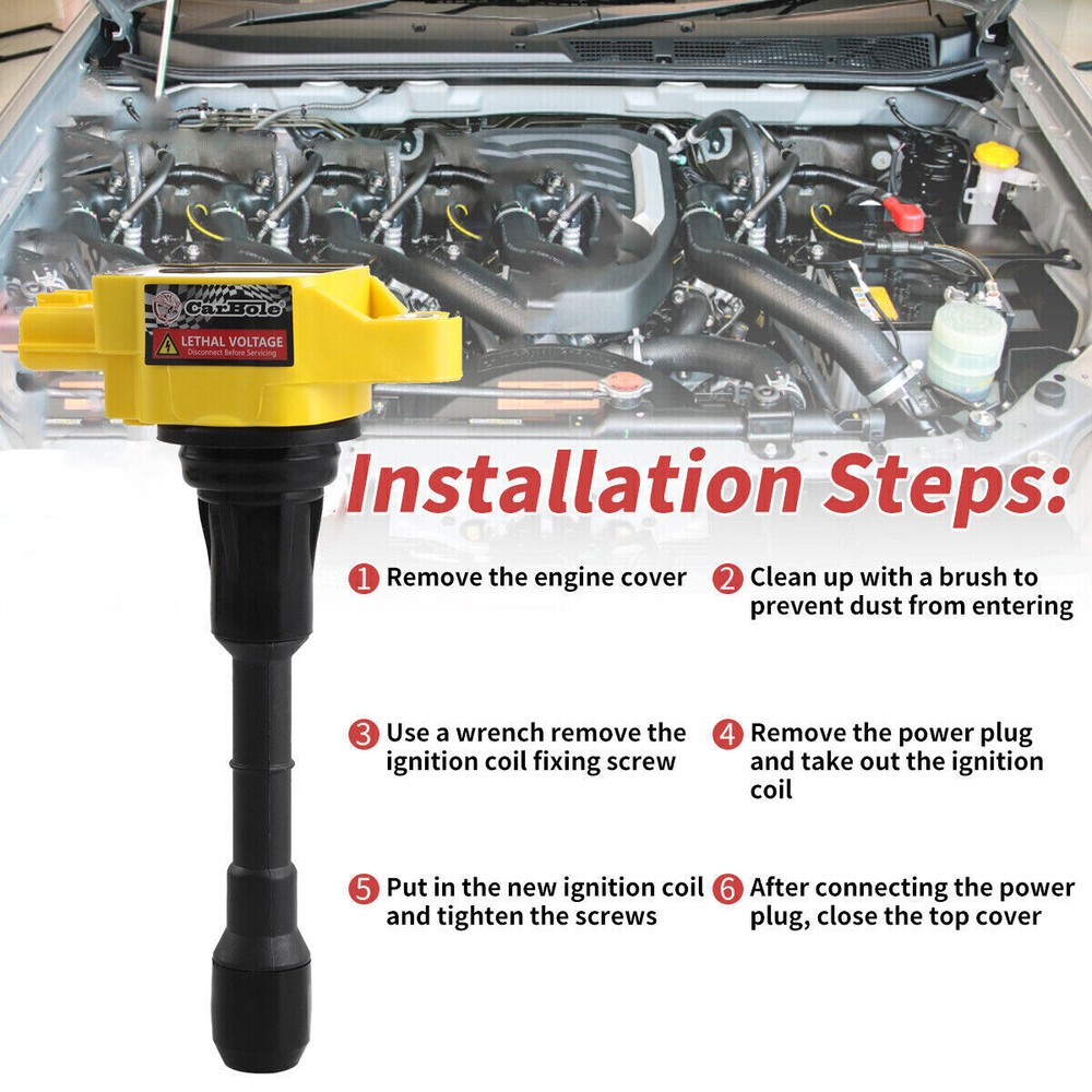 Specification: Installation Position:Front Vehicle Terminal Quantity:3 Terminal Gender:Male Terminal Type:Blade Voltage:12V Package Quantity:6 Installation: 1. Open the ignition coil cover on the top of the engine; 2. Use the wrench to remove the ignition coil fixing screw; 3. Remove the ignition coil. 4. Use a screwdriver to gently tilt up and take out the ignition coil; 5. Put in a new ignition coil and fasten the screws; 6. After connecting the plug, see Cover the top cover. Details: Automotiveparts_aa Best choice of motor parts 6PCS Ignition Coils Pack for Nissan Murano Maxima Infiniti Altima 3.5L V6 UF550 Specification: Installation Position:Front Vehicle Terminal Quantity:3 Terminal Gender:Male Terminal Type:Blade Voltage:12V Package Quantity:6 Installation: 1. Open the ignition coil cover on the top of the engine; 2. Use the wrench to remove the ignition coil fixing screw; 3. Remove the ignition coil. 4. Use a screwdriver to gently tilt up and take out the ignition coil; 5. Put in a new ignition coil and fasten the screws; 6. After connecting the plug, see Cover the top cover. Details: 100% Brand New Items, Never Used Or Installed High quality Proper alignment, positioning and spacing for faster, easier installation Designed to meet or exceed specifications in form, fit and function High quality components and materials Superior performance and reliability Features: 1) All parts are hand inspected off the line before packaging and once again by our team before shipment. 2) According to the original factory specifications. Superior performance and reliability 3) Easy installation. 4) High quality components and materials. Stable characteristics, high reliability. 5)High quantity product for factory 6)Easy to install, direct fits 7)A perfect replacement for your original part 8)Condition: Brand New 9)Fitment Type:Direct Replacement Part Number: UF550 , C1670, 22448-JA10C, 5C1727, E1050, 52-2082, IC630, C1670, 1788376, 522082, 6734029, 22448-JA11C, 22448-JA10A, IGC0003, 50150 Fitment: 2015 Nissan Pathfinder 2.5L l4 2016 Nissan Murano 2.5L l4 2011-2012 Infiniti G25 2.5L V6 2007-2009 Nissan 350Z 3.5L V6 2007-2018 Nissan Altima 3.5L V6 2008-2012 Infiniti EX35 3.5L V6 2009-2012 Infiniti FX35 3.5L V6 2007-2008 Infiniti G35 3.5L V6 2013 Infiniti JX35 3.5L V6 2009-2010 Infiniti M35 3.5L V6 2012-2013 Infiniti M35h 3.5L V6 2009-2020 Nissan Maxima 3.5L V6 2009-2020 Nissan Murano 3.5L V6 2013-2020 Nissan Pathfinder 3.5L V6 2014-2018 Infiniti Q50 3.5L V6 2014-2018 Infiniti Q70 3.5L V6 2011-2017 Nissan Quest 3.5L V6 2014-2020 Infiniti QX60 3.5L V6 Compatibility is just for reference. Please compare with your original one before purchasing Package Include: 6X ignition coils UF550 Notes: (1)Please make sure the part numbers matches the part you are replacing. Please review the information above carefully to make sure this part fits your vehicle. (2)If you have questions on whether this part fits your vehicle, please feel free to contact us via eBay.Thank you! (3)We will process your order within 1 business day upon payment. (4)If you have any questions about quality, shipping or other problems, please contact me first via eBay message. (5)Please don't open cases or return requests without contacting me. I will give you a satisfy solution. Certificates of our product: Our Factory: Payment PayPal: We accept Credit card, Debit card, Apple Pay, Google Pay and PayPal. Shipping We ship all items to United States only. International shipping is provided by Ebay global shipping program and is calculated once the items are placed in the shopping cart. Additional shipping fee may be charged for buyers from Puerto Rico, Hawaii, Alaska, Guam, and the U.S. military address of the United States or other remote area (zone 8-10). Returns It is the customers responsibility to get the item postmarked to us within the 60 day return period in NEW, UNUSED condition. If you decide to return your item for any reason please send the items back to the below address along with your receipt or packing slip. Package all items carefully so that they are not damaged during shipping. Items returned past 60 days or damaged will not be refunded. These items will be returned at the buyers expense. Refunds will be processed quickly when package arrival. Contact us immediately! Take photos and note damages. The more details you can provide, the quicker we can assist you. Contact Us If you have any questions, please feel free to consult via eBay message. We will handle it for you as soon as possible. Feedback We maintain high standards of excellence (five stars review)and strive for 100% customer satisfaction! FEEDBACK IS VERY IMPORTANT TO US. We request that you contact us immediately BEFORE you give us neutral or negative feedback, so that we can satisfactorily address your concerns. It is impossible to address issues if we do not know about them! Automotiveparts_aa Best choice of motor parts DESCRIPTION PAYMENT SHIPPING RETURN POLICY CONTACT US Shop Category Store Home Automotive Tools & Supplies Boat Parts Business & Industrial Car & Truck Parts & Accessorie Exterior Parts & Accessories Home Major Appliance Home&Garden Ignition Coils ◈ Ignition Coils Series Motorcycle & Scooter Parts Other Brand Excellent Delivery New List Item 8PCS UF413 Ignition Coil Pack For Chevy Silverado 1500 GMC 5.3L 6.0L 6.2L C1511 USD 139.99 8X DG511 Ignition Coil & SP546 Spark Plugs For Ford F150 Lincoln Mercury 5.4L V8 USD 92.86 Set of 4 Ignition Coil+Spark Plug UF611 for Hyundai Genesis Santa Tucson Optima USD 55.99 4PCS Ignition Coil & Spark Plug Pack For Nissan for Altima Sentra 2.5L L4 UF350 USD 68.99 Ignition Distributor For Chevy GMC Suburban Truck C1500 K1500 R2500 5.0/5.7/7.4L USD 59.87 Hot Item 10Pack Ignition Coil For Ford E350 Excursion F250 F350 F450 V10 6.8L DG508 97-16 USD 45.99 8X High Performance Ignition Coils for Ford F-150 Expedition 4.6L 5.4L V8 DG508 USD 33.59 8XIgnition Coil Pack & SP479 Iridium Spark Plug For Ford F-150 4.6/5.4L