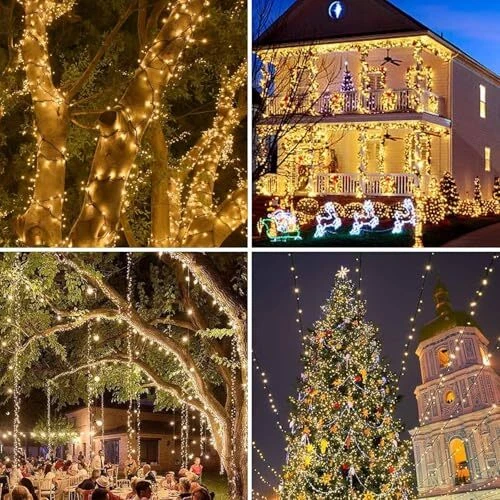 6-Pack Green Wire Solar Christmas Lights 255FT 720 LED Solar 6 Pack Warm White