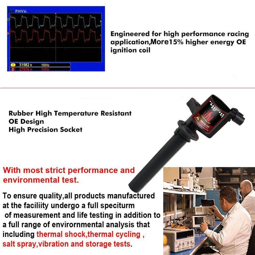 Details: 100% Brand New, Work Just Like OEM Coils (Standard Performance) Direct Plug In Replacement Direct OE Fit 5-Year Manufacturer Warranty Highly Specialized Silicone Magnetic Steel Cores OBD ll Compatible Safe Designed to provide original equipment fit, form and function Manufactured using high quality materials and processes Tested to perform under extreme electrical and thermal conditions Automotiveparts_aa Best choice of motor parts Item Specifics Interchange Part Number C1458, FD502,FD-495, FD-502,C1458, DG513 Quantity Sold as a set of 6 Other Part Number 1 AJ03-18-100, AJ09-18-100, , 1L8Z12029AB, 5C1617, AJ0318100 Manufacturer Part Number DG500, FD502,1L8212029AB, 1L8E12A366AB, 1L8E12A366AC Other Part Number 2 1L8Z-12029-AB, XS2Z-12029-AA, AJ03-18-100, 1115808 Placement on Vehicle Front Voltage 12V Terminal Gender Male Connector Gender Female Fitment 1 2001-2008 Ford Escape 3.0L V6 Fitment 2 2005-2007 Ford Escape 3.0L V6 Fitment 3 2005-2007 Ford Freestyle 3.0L V6 Fitment 4 2001-2004 Ford Taurus 3.0L V6-24 Valave Engines Only Fitment 5 2001-2009 Mazda Tribute 3.0L V6 Brand CARBOLE Fitment Type Direct Replacement Fitment 6 2005-2008 Mercury Mariner 3.0L V6 Fitment 7 2005-2007 Mercury Montego 3.0L V6 Fitment 8 2000-2004 Mercury Sable 3.0L V6 Warranty Lifetime Mount Type Bolt On Terminal Quantity 2 Mounting Hardware Included No Terminal Type Blade Coil Type Electronic 6Pack Ignition Coils for Ford Escape Taurus Mazda 2003- 2008 3.0L V6 FD502 DG500 Details: 100% Brand New, Work Just Like OEM Coils (Standard Performance) Direct Plug In Replacement Direct OE Fit 5-Year Manufacturer Warranty Highly Specialized Silicone Magnetic Steel Cores OBD ll Compatible Safe Designed to provide original equipment fit, form and function Manufactured using high quality materials and processes Tested to perform under extreme electrical and thermal conditions Features: 1) All parts are hand inspected off the line before packaging and once again by our team before shipment. 2) According to the original factory specifications. Superior performance and reliability 3) Easy installation. 4) High quality components and materials. Stable characteristics, high reliability. 5)High quantity product for factory 6)Easy to install, direct fits 7)A perfect replacement for your original part 8)Condition: Brand New 9)Fitment Type:Direct Replacement Specifications: Coil Wire Attachment: Female/Socket Coil Style: Coil pack Primary Resistance: 0.660 ohms Coil Internal Construction: Epoxy Coil Color: / Maximum Voltage: 26,000 V Turns Ratio: 61:1 Secondary Resistance: 6.1K ohms Mounting Bracket Included: No Coil Wire Included: No Ballast Resistor Included: No Coil Shape: Round Quantity: Sold as a set of 6. Part Number: C1458, FD502 , DG500 , AJ03-18-100, AJ09-18-100, FD-495, FD-502, 1L8Z12029AB, 5C1617, AJ0318100, C1458, DG513, 1L8Z-12029-AB, XS2Z-12029-AA, AJ03-18-100, 1115808 Fits Vehicles : 2001-2008 Ford Escape 3.0L V6 2005-2007 Ford Escape 3.0L V6 2005-2007 Ford Freestyle 3.0L V6 2001-2004 Ford Taurus 3.0L V6-24 Valave Engines Only 2001-2009 Mazda Tribute 3.0L V6 2005-2008 Mercury Mariner 3.0L V6 2005-2007 Mercury Montego 3.0L V6 2000-2004 Mercury Sable 3.0L V6 Please pay attention to the compatibility and find whether it fits your car or not!!!! Package Content: 6x Ignition Coils DG500 Notes: (1)Please make sure the part numbers matches the part you are replacing. Please review the information above carefully to make sure this part fits your vehicle. (2)If you have questions on whether this part fits your vehicle, please feel free to contact us via eBay.Thank you! (3)We will process your order within 1 business day upon payment. (4)If you have any questions about quality, shipping or other problems, please contact me first via eBay message. (5)Please don't open cases or return requests without contacting me. I will give you a satisfy solution. Certificates of our product: Our Factory: Payment PayPal: We accept Credit card, Debit card, Apple Pay, Google Pay and PayPal. Shipping We ship all items to United States only. International shipping is provided by Ebay global shipping program and is calculated once the items are placed in the shopping cart. Additional shipping fee may be charged for buyers from Puerto Rico, Hawaii, Alaska, Guam, and the U.S. military address of the United States or other remote area (zone 8-10). Returns It is the customers responsibility to get the item postmarked to us within the 60 day return period in NEW, UNUSED condition. If you decide to return your item for any reason please send the items back to the below address along with your receipt or packing slip. Package all items carefully so that they are not damaged during shipping. Items returned past 60 days or damaged will not be refunded. These items will be returned at the buyers expense. Refunds will be processed quickly when package arrival. Contact us immediately! Take photos and note damages. The more details you can provide, the quicker we can assist you. Contact Us If you have any questions, please feel free to consult via eBay message. We will handle it for you as soon as possible. Feedback We maintain high standards of excellence (five stars review)and strive for 100% customer satisfaction! FEEDBACK IS VERY IMPORTANT TO US. We request that you contact us immediately BEFORE you give us neutral or negative feedback, so that we can satisfactorily address your concerns. It is impossible to address issues if we do not know about them! Automotiveparts_aa Best choice of motor parts DESCRIPTION PAYMENT SHIPPING RETURN POLICY CONTACT US Shop Category Store Home Automotive Tools & Supplies Boat Parts Business & Industrial Car & Truck Parts & Accessorie Exterior Parts & Accessories Home Major Appliance Home&Garden Ignition Coils ◈ Ignition Coils Series Motorcycle & Scooter Parts Other Brand Excellent Delivery New List Item Set of 4 Ignition Coil+Spark Plug for Hyundai Genesis Santa Tucson Optima UF611 USD 55.99 Set of 4 Ignition Coil & S