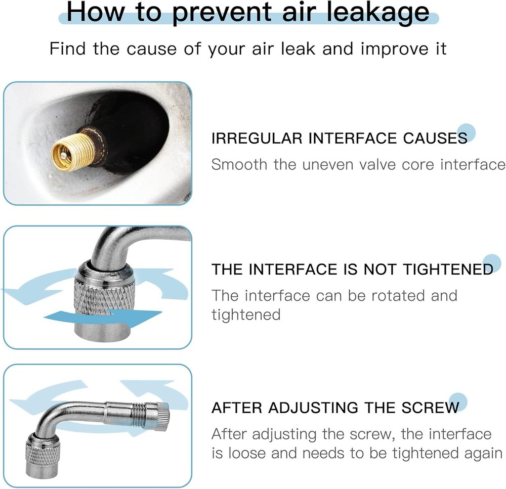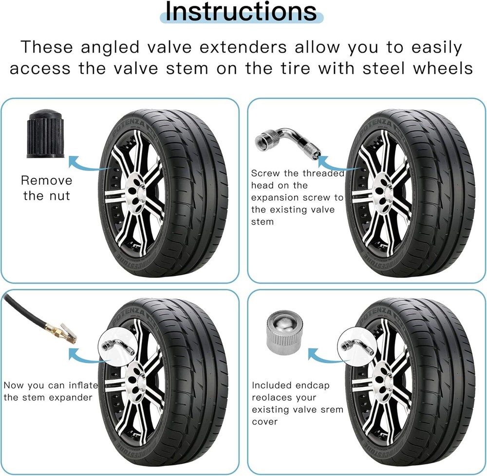 6-Pack Valve Stem Extenders, 45 Degree 90 Degree 135 Degree Schrader Tire Valve Three kinds of valve stem extension(45 degree, 90 degree and 135 degree)successfully solved a series of operations such as inability to pump or check air pressure due to insufficient space between the valve and the spokes, or the inconvenient position and angle of the valve. Due to the built-in valve core, they can allow inflation and deflation, which is convenient and quick. Be sure to tighten the thread when using it, otherwise the best sealing effect cannot be achieved. The tire valve extension joint is made of brass, the surface is chrome-plated, the chrome-plated layer has higher hardness, better heat resistance, and is not easy to rust. Equipped with rubber sealing ring and sealing cover, durable. The bottom of the extension piece rotates freely, which is easy to operate, convenient and efficient. Prevent air leakage! 1. Install the valve angle extension on the valve core, and be sure to tighten the thread of the rotating part so that there is no air leakage. 2. When you are adjusting the angle, you rotate the valve extension. After the angle adjustment is over, you must tighten the rotating thread to the maximum. 3. The threaded head on the valve extenders is screwed on the existing valve stem, and the included end cap replaces the existing valve stem cover. Our valve core adapters are equipped with rubber sealing rings and sealing caps to ensure air tightness without leakage. It is recommended to tighten the sealing caps quickly after use to prevent air leakage! These tire valve extensions suitable for most bicycles, motorcycles, strollers, trailers, RVs with standard American tire valves. How long is the warranty/renew? We offer a hassle-free 12-month warranty and 24-hour friendly customer service. If there is any dissatisfaction with the product, or the parts are missing, please contact us at any time, whether it is a new one or a refund, we will definitely give you a satisfactory answer. Be responsible for your choice, let you place an order with peace of mind~ Shipping We offer FREE shipping on all orders! We ship within Three business days of payment, usually sooner. We use a selection of shipping services such as UPS, FedEx, USPS etc. We only ship to the lower 48 states, no APO/FPO addresses or PO Boxes allowed. Local pickups and combined shipping options are not provided at this time. Return You can return a product for up to 30 days from the date you purchased it. Any product you return must be in the same condition you received it and in the original packaging. Please keep the receipt. Customer satisfaction is very important to us. If you have any problem with your order, please contact us and we will do our best to make you satisfied. Contact Us If you have any queries, please contact us via ebay. We usually respond within 24 hours on weekdays. Please visit our eBay store to check out other items for sale! Thank you for shopping at our store.