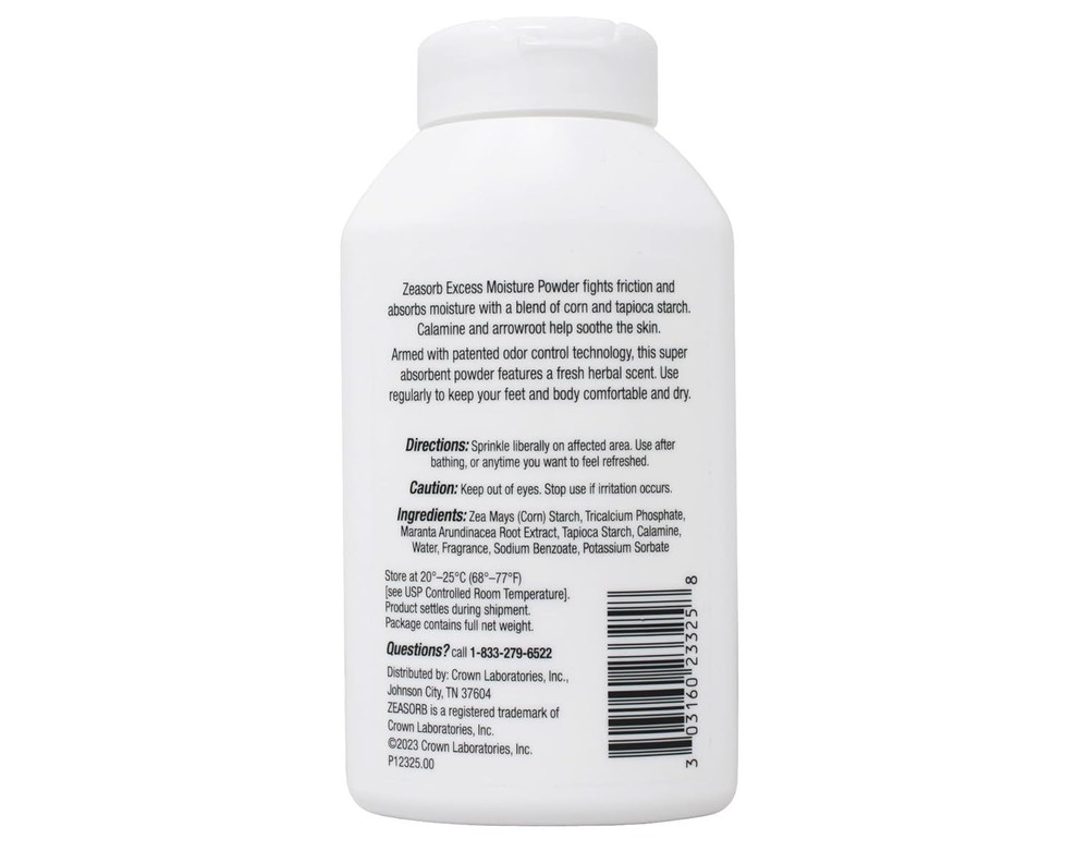 Special pack of 6 Zeasorb Super Absorbent Powder 2.5 oz (70.9 g) Product Details Is Discontinued By Manufacturer : No Product Dimensions : 4.02 x 2.99 x 10.02 inches; 7.83 ounces Item model number : 63111009 Manufacturer : Choice Brand: Zeasorb Item Form: Powder Scent: Fresh Number of Items: 6 Unit Count: 2.5 Ounce Absorbs Three Times More Moisture Than Plain Talcum Powder. Absorbs excess perspiration Zeasorb Super Absorbent Powder For use whenever removal of excess moisture is desired Use regularly to keep your feet and body dry and comfortable Helps prevent growth of bacteria and fungi Soothes athlete's foot, chafing, heat rash and diaper rash. Absorbs excess perspiration---for use whenever removal of excess moisture is desired.