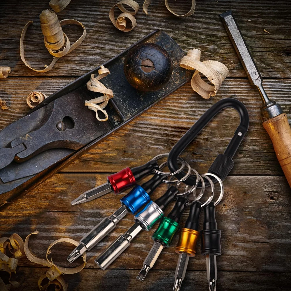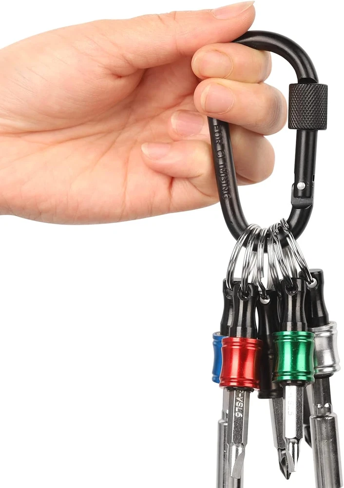 Store New Arrivals Add to Favorite View Feedback Contact Fast deliveries to the customer's home Quality customer service John Make the customers happy! 6Pcs 1/4 Inch Hex Shank Aluminum Alloy Screwdriver Bits Holder 2 Sets, Light-Weight Quick-Change Extension Bar Keychain Drill Screw Adapter Change Portable (With Black Carabiner) Description Great Compatibility: This Katerk 1/4 inch hex shank bit holder is specifically designed for 1/4" hex shank drill bits. It's compatible with most 1/4 fast hex handles sockets, screwdrivers Secure and Safe: Our drill bit holder features a secure backup nut design that firmly locks onto your bits, while the high-quality steel ball design ensures they hold several kilograms of weight without slipping Easy One-Handed Operation: This bit holder enables single-handed bit changes, streamlining your workflow. The multi-color design ensures quick identification of the drill bit you need Compact and Convenient: This 1/4 inch bit holder is compact, lightweight, and easy to carry, making it a practical addition to your construction tools. Made from high-quality alloy, the Katerk bit holder ensures durability and a long lifespan Cool Christmas Gift For Men: This screwdriver bit holder is perfect for anyone in construction or electrical work. It's an ideal stocking stuffer or gift for dads, husbands, boyfriends, and anyone who loves cool gadgets and tools Product Description The video showcases the product in use. The video guides you through product setup. The video compares multiple products. The video shows the product being unpacked. LIGHT WEIGHT 1 set (6 pcs): Only 2.78oz / 79g 1pcs holder: Only 0.18oz / 5g HANDY & PORTABLE Convenient way to hold your bits at hand either on your tool belt or drill/impact driver holster PERMANENT Chrome-plated surface is anti-rust and corrosion-resistant, anti-oxidation QUICK SWITCHES 6 colors help for quick switches Katerk Bit Holder Is A Great Way To Say Goodbye to Chaos Add to Cart Add to Cart Add to Cart Add to Cart Add to Cart Add to Cart Add to Cart Customer Reviews 4.5 out of 5 stars 9,057 4.5 out of 5 stars 20 4.5 out of 5 stars 20 4.5 out of 5 stars 20 4.5 out of 5 stars 9,057 4.5 out of 5 stars 9,057 4.5 out of 5 stars 9,057 Price $9.99 $ 9 . 99 $23.99 $ 23 . 99 $23.99 $ 23 . 99 $23.99 $ 23 . 99 $12.59 $ 12 . 59 $9.99 $ 9 . 99 $9.99 $ 9 . 99 Upgrade Bit Holder ✔ ✔ ✔ ✔ ✔ ✔ ✔ Easy Insert ✔ ✔ ✔ ✔ ✔ ✔ ✔ Quick Release ✔ ✔ ✔ ✔ ✔ ✔ ✔ Handy ✔ ✔ ✔ ✔ ✔ ✔ ✔ With Locknut ✔ ✔ ✔ ✔ ✘ ✔ ✔ Item model number HU-XI-46 Style Functional, Stylish, Compact, Practical, Sleek, Versatile and Modern. Closure Type Snap Hook Theme Space Batteries Included? No Usage bit holder Number of Pieces 1 Batteries Required? No Finish Chrome Material Aluminum Item Package Quantity 1 Item dimensions L x W x H 4.72 x 3.94 x 0.67 inches Handle/Lever Placement Push Button Item Weight 5.3 ounces Head Style Hex Special Features Lightweight Special Feature Lightweight Part Number HU-XI-46 Color Black (2 Sets) Compatible Fastener Range Compatible with any 1/4 inch head Shape Round Included Components 2 pieces Black Carabiners, 12 pieces Bit Holders Product Dimensions 4.72 x 3.94 x 0.67 inches Size 2 set (2 Carabiners + 12 bit-holders) ABOUT US We offer the best prices around on high quality products. Our E-store includes media such as books, movies, music and games while offering electronics, toys, sporting apparel, clothing, tools, general home, garden items and more. SHIPPING We are always working hard to ensure your package arrives as soon as possible. Please understand that some factors like weather, high postal traffic, and the performance of shipping companies are outside of our control. We offer free shipping to the lower 48 states and ship within 2 business days of payment, usually sooner. We do not accept P.O. Boxes. Please provide a physical address. For shipping outside of the continental USA, we only use eBay's Global Shipping Program. The item is shipped to KY and then sent to the rest of the world. International customers are responsible for all duties and taxes. Continue to 'check out' to calculate costs for shipping the item to your country. Messages regarding eBay's Global Shipping Program MUST be directed at eBay EXCLUSIVELY. RETURNS We offer a 30-Day Return Policy on items in which you are not completely satisfied with. You have the option of a full-refund or an exchange of the item. No returns are available on items shipped outside of the USA PAYMENT We accept PayPal. CONTACT US This page content is yet to come Please ad us to your favorite seller and visit again later Thank You CUSTOMER SATISFACTION We try our very best to make sure every customer is completely satisfied. If there's a problem, message us! We're happy to help. WE ACCEPT