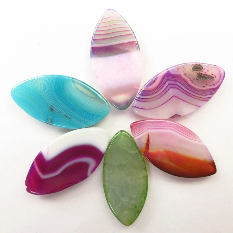 6Pcs 40x20x6mm Multicolor Onyx Agate Olivary Cab Cabochon D95393