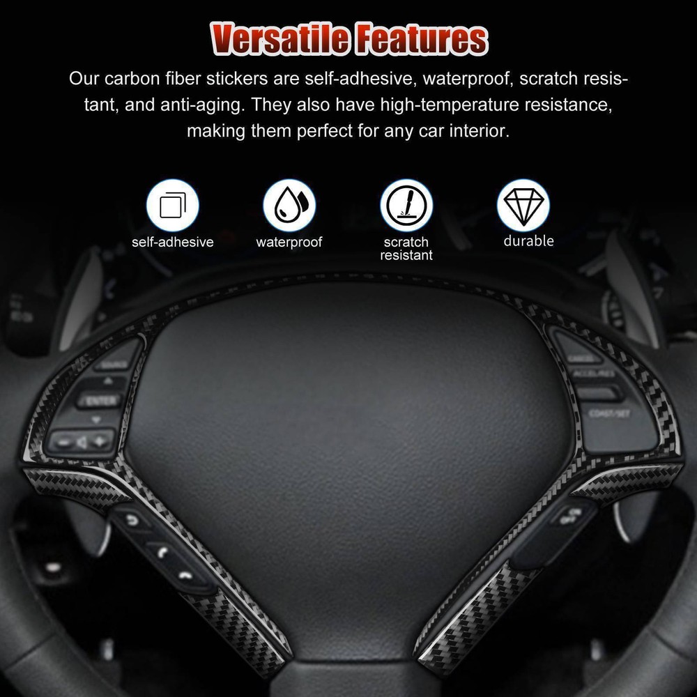 1 Pair ABS Gloss Black Window Louver Shutter Trim Cover For Honda CRV 2017-2022 76.55 USD 86.99 USD 9.99 USD 12% off 2Pcs Real Carbon Fiber Car Door Radar Cover Trim For Chevrolet Corvette C8 20-24 31.66 USD 35.98 USD 9.99 USD 12% off Real Carbon Fiber Exterior Door Handle Cover Trim for Porsche Panamera 971 17-22 131.01 USD 148.87 USD 9.99 USD 12% off Black Rear Door Tailgate Pedal Protector Cover Trim For Chevy Silverado 2019-21 15.63 USD 17.76 USD 9.99 USD 12% off Real Carbon Fiber Front Windshield A Pillar Trim Cover For Corvette C7 2014-2019 223.9 USD 254.43 USD 9.99 USD 12% off 8pcs Door Hinge Cover Trim Set for Jeep Wrangler JL 2018+ Gladiator JT Black 26.38 USD 29.98 USD 9.99 USD 12% off 2x For Hyundai Sonata 2015-2017 Chrome ABS Rear Bumper Fog Light Lamp Frame Trim 32.54 USD 36.98 USD 9.99 USD 12% off For Toyota Highlander 2020-2024 Carbon Fiber Inner Car Door Handle Cover Trim 31.28 USD 35.54 USD 9.99 USD 12% off Fit For Ford Explorer 2011-2019 Chrome Exterior Rear View Mirror Cover Trim 2PCS 72.34 USD 82.21 USD 9.99 USD 12% off 2PCS Carbon Fiber Central Water Cup Holder Cover For Hyundai Veloster JS N 19-22 12.68 USD 14.41 USD 9.99 USD 12% off Real Carbon Fiber Exterior Side Door Handle Trim For Ford F-150 Raptor 2009-14 39.1 USD 44.43 USD 9.99 USD 12% off Carbon Fiber Rear Armrest Air Outlet Vent Cover Trim For Acura TLX 2015-2022 43.01 USD 48.87 USD 9.99 USD 12% off Smoked Black Rear Tail Light Cover Trim For Land Rover Defender 90 110 2020-2024 48.88 USD 55.54 USD 9.99 USD 12% off 2x Black Carbon Fiber Interior Center Cupholder Cover Trim For Honda Civic 03-05 17.58 USD 19.98 USD 9.99 USD 12% off For Dodge Challenger 2015-2020 3Pcs Carbon Fiber Copilot Dashboard Panel Cover 18.57 USD 21.1 USD 9.99 USD 12% off 3x For Audi Q7 SQ7 2016-19 Black Carbon Fiber Inner Gear Shift Panel Cover Trim 44.97 USD 51.1 USD 9.99 USD 12% off SAFE & SECURE SHOPPING 100% SATISFACTION GUARANTEED FAST SHIPPING Store Categories Store Categories You may also like 1 Pair ABS Gloss Black Window Louver Shutter Trim Cover For Honda CRV 2017-2022 76.55 USD 86.99 USD 9.99 USD 12% off 2Pcs Real Carbon Fiber Car Door Radar Cover Trim For Chevrolet Corvette C8 20-24 31.66 USD 35.98 USD 9.99 USD 12% off Real Carbon Fiber Exterior Door Handle Cover Trim for Porsche Panamera 971 17-22 131.01 USD 148.87 USD 9.99 USD 12% off Black Rear Door Tailgate Pedal Protector Cover Trim For Chevy Silverado 2019-21 15.63 USD 17.76 USD 9.99 USD 12% off Real Carbon Fiber Front Windshield A Pillar Trim Cover For Corvette C7 2014-2019 223.9 USD 254.43 USD 9.99 USD 12% off 8pcs Door Hinge Cover Trim Set for Jeep Wrangler JL 2018+ Gladiator JT Black 26.38 USD 29.98 USD 9.99 USD 12% off 2x For Hyundai Sonata 2015-2017 Chrome ABS Rear Bumper Fog Light Lamp Frame Trim 32.54 USD 36.98 USD 9.99 USD 12% off For Toyota Highlander 2020-2024 Carbon Fiber Inner Car Door Handle Cover Trim 31.28 USD 35.54 USD 9.99 USD 12% off Fit For Ford Explorer 2011-2019 Chrome Exterior Rear View Mirror Cover Trim 2PCS 72.34 USD 82.21 USD 9.99 USD 12% off 2PCS Carbon Fiber Central Water Cup Holder Cover For Hyundai Veloster JS N 19-22 12.68 USD 14.41 USD 9.99 USD 12% off Real Carbon Fiber Exterior Side Door Handle Trim For Ford F-150 Raptor 2009-14 39.1 USD 44.43 USD 9.99 USD 12% off Carbon Fiber Rear Armrest Air Outlet Vent Cover Trim For Acura TLX 2015-2022 43.01 USD 48.87 USD 9.99 USD 12% off Smoked Black Rear Tail Light Cover Trim For Land Rover Defender 90 110 2020-2024 48.88 USD 55.54 USD 9.99 USD 12% off 2x Black Carbon Fiber Interior Center Cupholder Cover Trim For Honda Civic 03-05 17.58 USD 19.98 USD 9.99 USD 12% off For Dodge Challenger 2015-2020 3Pcs Carbon Fiber Copilot Dashboard Panel Cover 18.57 USD 21.1 USD 9.99 USD 12% off 3x For Audi Q7 SQ7 2016-19 Black Carbon Fiber Inner Gear Shift Panel Cover Trim 44.97 USD 51.1 USD 9.99 USD 12% off 6Pcs Carbon Fiber Steering Wheel Cover Frame Trim For Infiniti G37 G35 08-13 Q60 Product Description Feature ✅ Premium Material: Made from high-quality carbon fiber with a 3mm ultra-clear polyurethane coating, our stickers offer a visually stunning 3D effect with a soft touch. ✅ Versatile Features: Our carbon fiber stickers are self-adhesive, waterproof, scratch resistant, and anti-aging. They also have high-temperature resistance, making them perfect for any car interior. ✅ Easy Installation: Simply tear off the protective film on the back and apply the sticker directly. It's that easy! ✅ Stylish Upgrade: With our carbon fiber stickers, you can transform your car's interior from ordinary to extraordinary. With their sleek and stylish design, they'll make your car stand out from the crowd. ✅ Note: In cold weather or if the product feels hard, use a hair dryer to heat the back side to soften the product and increase adhesion. Basic Installation Instructions 👉 1. Simulated installation: Compare and adjust the position of the product installed on the vehicle to the exact position. 👉 2. Surface treatment 👉 ① Cleaning: Clean the body with towel or water on the parts to be installed. 👉 ② Precautions: Before installation, the body must be kept dry and free of dust, oil, wax and 3M glue on the body. The product must be heated when the temperature is lower than 10 ℃. 👉 ③ Installation: Tear off the adhesive protective paper on the back of the main body (you can use a hot-air blower to heat the double-sided adhesive tape properly) and stick it to a suitable position, then press it hard for a while. 👉 ④ It is better not to see water within 2-3 days after installing the trim strip, otherwise the adhesion will be affected Fitment 🔸 Compatible with Infiniti G37 2008-2013 🔸 Compatible with Infiniti G35 2007-2008 🔸 Compatible with Infiniti G25 2011-2012 🔸 Compatible with Infiniti Q60 2014-2015 Specification Type: Trim Material: Carbon fiber+polyurethane Color: Black Quantity: 6pcs/set Size: 28.3 * 16.7cm/11.14 * 6.57inch Attachment Type: Self-adhesive Features: Waterproof,