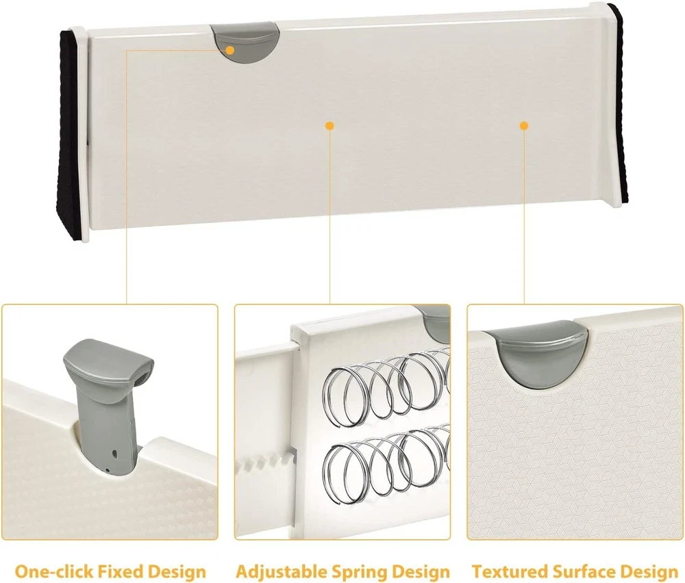 Finally got my drawers organized! These dividers slide perfectly and click into place without any tools. They fit my kitchen and bathroom drawers exactly, keeping everything neat and accessible. Love how versatile they are!
