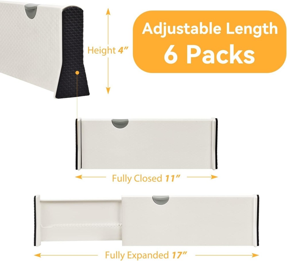 6-Piece Adjustable Drawer Organizer Set – Fits 11-17" Width, 4" High ‹ › ‹ › ‹ › ‹ › ‹ › ‹ › ‹ › ‹ › 6-Piece Adjustable Drawer Organizer Set Perfectly fits 11-17" Width, 4" High Features: Expandable & Adjustable: Effortless slide and one-click installation without any tools or glue required. Just lift the lever, place it in your drawer, adjust to fit, and lock in place. Multipurpose Drawer Dividers: Ideal for use in any drawer throughout your home or office. Efficiently separate kitchen silverware, utensils, cosmetics, clothing, or even towels. Superior Materials: Ends are covered with high-quality Eva foam sponges to prevent scratching or damaging your drawers, leaving no traces or residue. Well-Designed Size: Each of the six drawer storage boxes measures 4 inches high and expands between 11-17 inches, accommodating most drawers and cabinets. Keep Your Drawers Tidy: Bid farewell to messy drawers! These dividers will help you organize your belongings, making it easy to find essentials like socks and underwear. Customer Satisfaction: If you’re unhappy with your purchase for any reason, contact us, and we will solve the problem for you. Benefits: Customize your drawer space according to your specific needs. Experience seamless organization in your home or office. Protect your drawer interiors with soft EVA foam edge covers. Strong, durable mechanism provides reliable support even with heavy items. Why choose our Adjustable Drawer Organizer Set? Are you overwhelmed by the clutter and chaos of unorganized drawers? Our 6-Piece Adjustable Drawer Organizer Set is your solution—combining elegance and functionality to transform your space. With effortless adjustment and installation, these organizers will help you create a tidy and personalized storage solution that fits your lifestyle. Don’t let disorder rule your space. Elevate your home or office organization game with our stylish drawer organizers today! Shipping Free & Fast Shipping - We offer free shipping to most of the USA with a normal delivery time of 3-7 days. However, due to the current situation, additional delivery time (up to 3 weeks) may be required for some items. Alternative Carriers - We may use alternative carriers (e.g. USPS, FedEx, UPS, etc.) to ensure your package arrives safely and on time. Due to the use of multiple carriers, we are unable to provide a tracking number automatically. Handling Time - Orders are processed and shipped within 1-2 business days of receiving cleared payment. Shipping Restrictions - Shipping to Alaska, Hawaii, Puerto Rico, Guam, and other US territories may incur shipping charges or delivery restrictions. Please contact us before ordering, or your order can be refunded/cancelled. State Restrictions - There may be restrictions based on your state of purchase. For example, certain items may not be shipped to California due to state regulations. Contact for Tracking Updates - If you require tracking updates or have any concerns about the delivery of your order, please feel free to contact us, and we will be happy to assist you. Return 30-Day Hassle-Free Returns - We want you to be completely satisfied with your purchase. If you are not, you can return the item within 30 days of receiving it for a full refund or exchange. Easy Return Process - To start a return, simply contact us and we will provide you with a prepaid return shipping label and detailed instructions. Restocking Fee - There are no restocking fees for returns. However, the buyer is responsible for return shipping costs if the return is not due to a seller's error. Refund Processing Time - Refunds will be processed within 5 business days of receiving the returned item in its condition. Payment We accept all major credit cards, PayPal, and Apple Pay for your convenience. Your payment information is secure and encrypted to ensure a safe and seamless transaction. Please complete your payment within 3 days of purchase to avoid any delays in shipping. Feedback Your feedback is extremely important to us. We strive to provide the best products and customer service possible. If you are satisfied with your purchase, please take a moment to leave us a positive review. If you have any concerns or issues with your order, please contact us before leaving negative feedback. We are committed to resolving any problems and ensuring your satisfaction. Contact Us If you have any questions or concerns, please feel free to out to our customer support team. You can contact us through the eBay messaging system. We are available Monday to Friday, 9:00 am to 5:00 pm EST, and we will do our best to respond to your inquiry within 24 hours. Buy it now and enjoy a pleasant shopping experience! Unit Quantity: 1.0 count Material: Ethylene Vinyl Acetate,Foam Mounting: Free Standing Features: Adjustable,Expandable,Locks in Place Care Instructions: Clean with Damp Cloth,Do Not Wash Item Height: 4 Inches Item Length: Drawer Dividers Item Width: Drawer Dividers Type: Drawer Organizer Number of Shelves: 0 Number of Items in Set: Six-Piece Item Weight: 1 lb Item Depth: 2 in Color: Beige Number in Pack: 6 Number of Compartments: 6 Style: Modern Finish: Unfinished