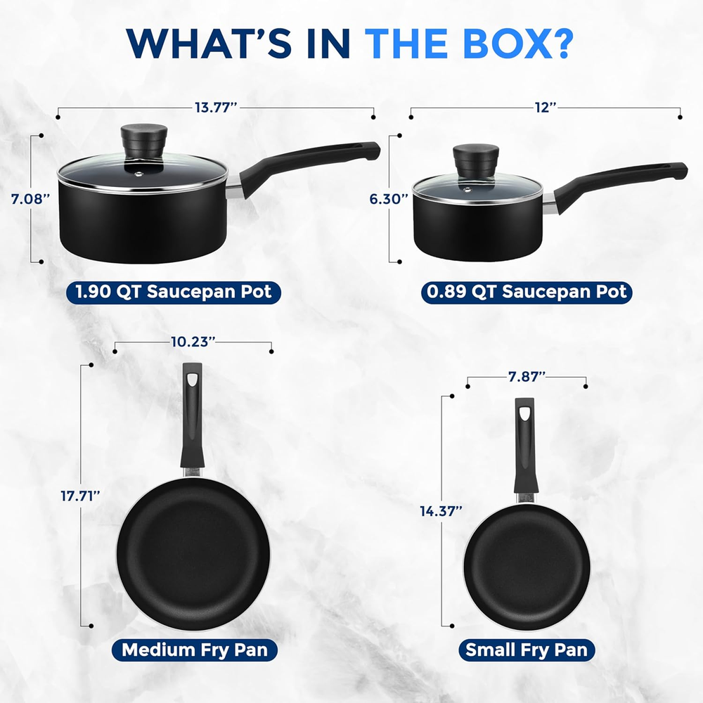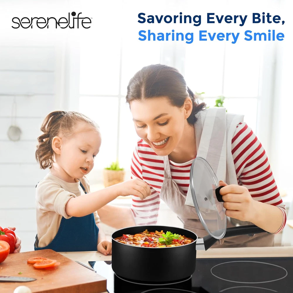 Store New Arrivals Add to Favorite View Feedback Contact 6-Piece Pots and Pans Set – Nonstick Cookware, Black Coating, Heat-Resistant, Dishwasher Safe, Includes Fry Pans, Saucepans with Lids, Color Black Description Item model number SLCW6BLK Global Trade Identification Number 00842893137988 Closure Material Tempered Glass Size One Size Number of Pieces 1 Item Volume 2.79 Quarts Color Black Included Components Small Fry Pan, 8-Inch, Sauce Pot with Lid, (0.89 qt), Medium Fry Pan, 10-Inch, Sauce Pot with Lid, (1.90 qt) Material Aluminum Country of Origin China Is Dishwasher Safe No Item Weight 7.04 pounds Is Oven Safe No Handle Material Bakelite With Lid Yes Compatibility Options Pots & Pans Safe for Gas, Electric & Ceramic Counter Cooktops Special Feature Gas Stovetop Compatible, Electric Stovetop Compatible, Manual Package Dimensions 21.1 x 13.7 x 6.06 inches Material Type Free Perfluorooctane Sulfonate (PFOS) Free, Perfluorooctanoic Acid (PFOA) Free 6-PIECE SET: The SereneLife Home Basic Kitchen Cookware Set features a 6-piece nonstick cookware set which includes 0.89 quart and 1.90 quart sauce pots with lids, 8-inch small fry pan, and 10-inch medium fry pan NON-STICK COATING: The PFOA/PFOS-free non stick pot set cooking ware features a long lasting nonstick coating for easy food release or tossing, cleaning & healthy cooking w/ heat resistant lacquer exterior making it resistant to high heat COMFORTABLE HANDLE GRIPS: Features solid Italian bakelite handles that are ergonomic & heat-resistant ensuring comfortable & safe cooking. Offers sleek design w/ anti-scratch polished stain-resistant edges adding an elegant touch to the pots & pans SEE-THROUGH LIDS: The non stick cookware is equipped with see through tempered glass lids w/ vent holes that allow steam to escape. Dishwasher safe cookware set effectively distributes & retains heat for even cooking w/ 350° F max temperature UNIVERSAL COOKING: These pots and skillet fry pans are safe for use in gas, electric & ceramic counter cooktops. Made of pressed aluminum metal w/ coating thickness of 20-25um, 2.5mm pressed aluminum, and basic black N/S interior coating Product Description ABOUT US We offer the best prices around on high quality products. Our E-store includes media such as books, movies, music and games while offering electronics, toys, sporting apparel, clothing, tools, general home, garden items and more. SHIPPING We are always working hard to ensure your package arrives as soon as possible. Please understand that some factors like weather, high postal traffic, and the performance of shipping companies are outside of our control. We offer free shipping to the lower 48 states and ship within 2 business days of payment, usually sooner. We do not accept P.O. Boxes. Please provide a physical address. For shipping outside of the continental USA, we only use eBay's Global Shipping Program.The item is shipped to KY and then sent to the rest of the world. International customers are responsible for all duties and taxes. Continue to check out in order to calculate costs for shipping the item to your country. Messages regarding eBay's Global Shipping Program MUST be directed at eBay EXCLUSIVELY. RETURNS We offer a 30-Day Return Policy on items which you are not completely satisfied with. You have the option for a full-refund or an exchange of the item. No returns are available on items shipped outside of the USA. PAYMENT We accept PayPal. CONTACT US This page content is yet to come Please ad us to your favorite seller and visit again later Thank You CUSTOMER SATISFACTION We try our very best to make sure every customer is completely satisfied. If there's a problem, message us! We're happy to help. WE ACCEPT Copyright © 2021 AutoDS. | All Rights Reserved